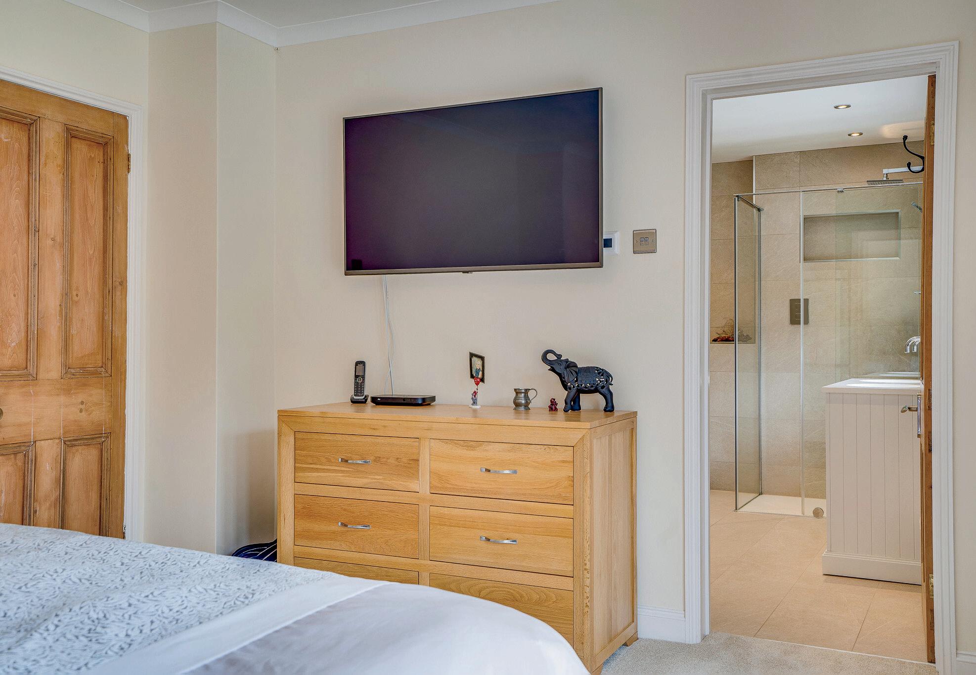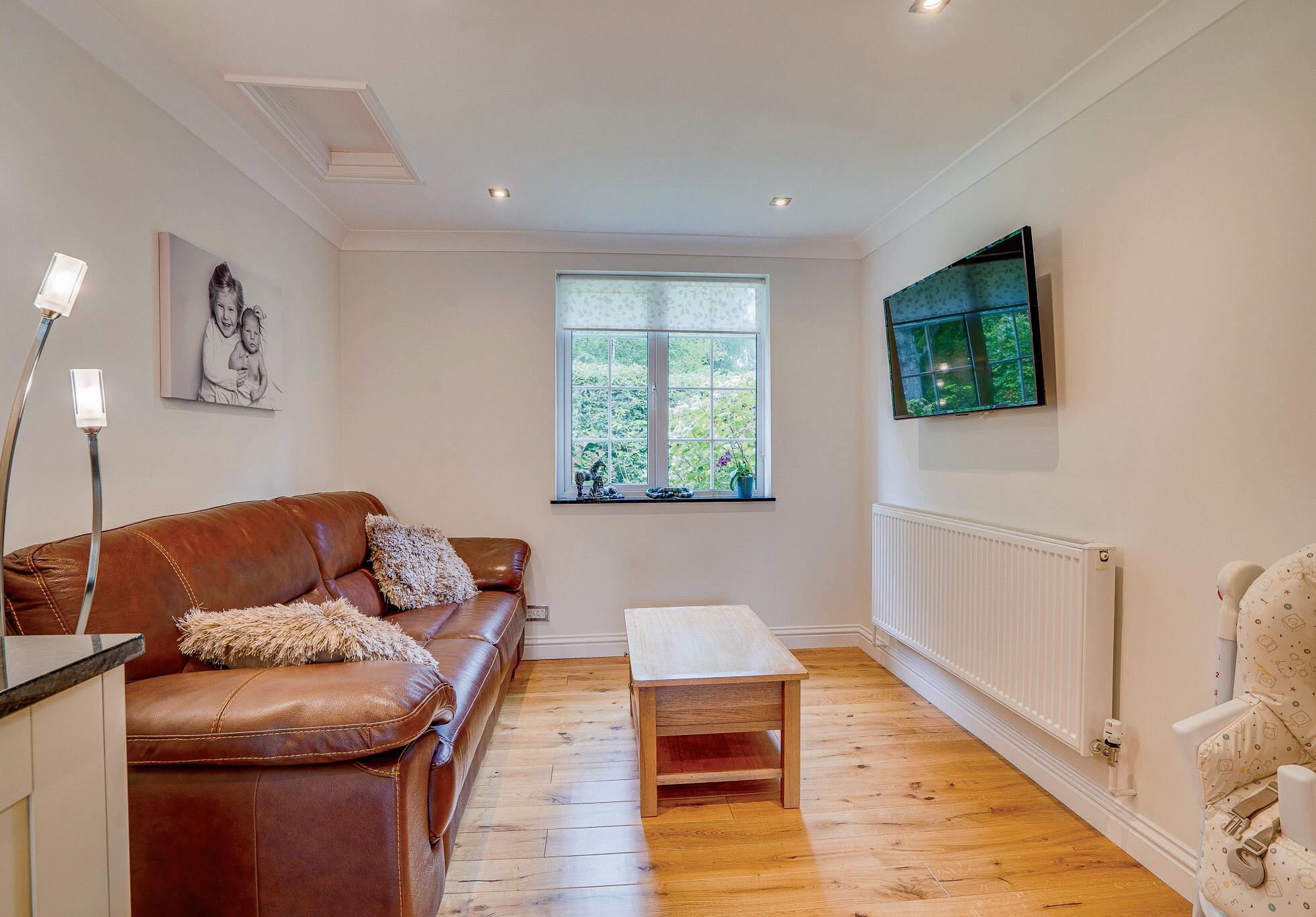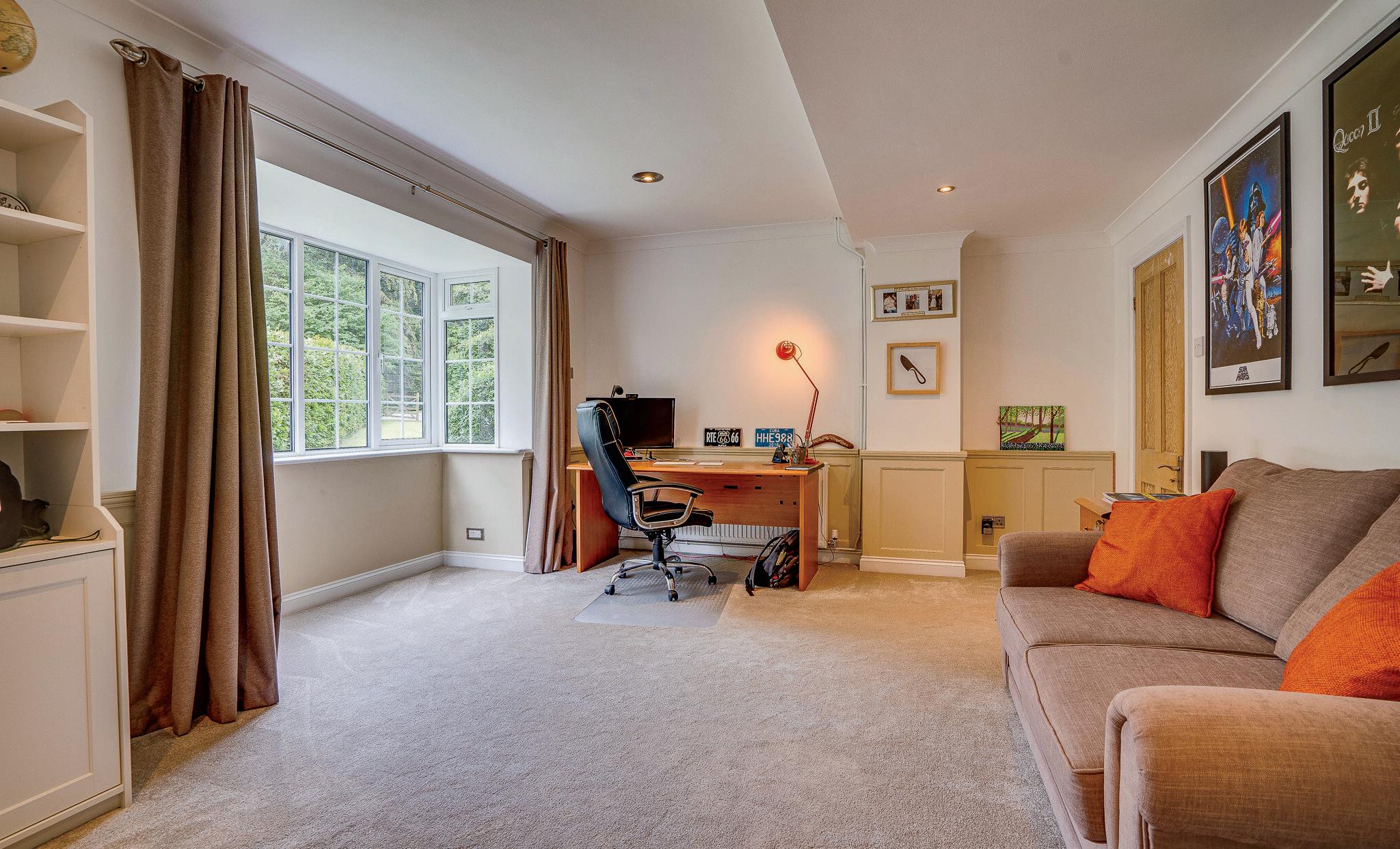 Rounding off the ground level is a plush sitting room, adorned with a charming bay window. Currently a home office sanctuary, its versatility promises potential as a play space or even a sixth sleeping quarter.