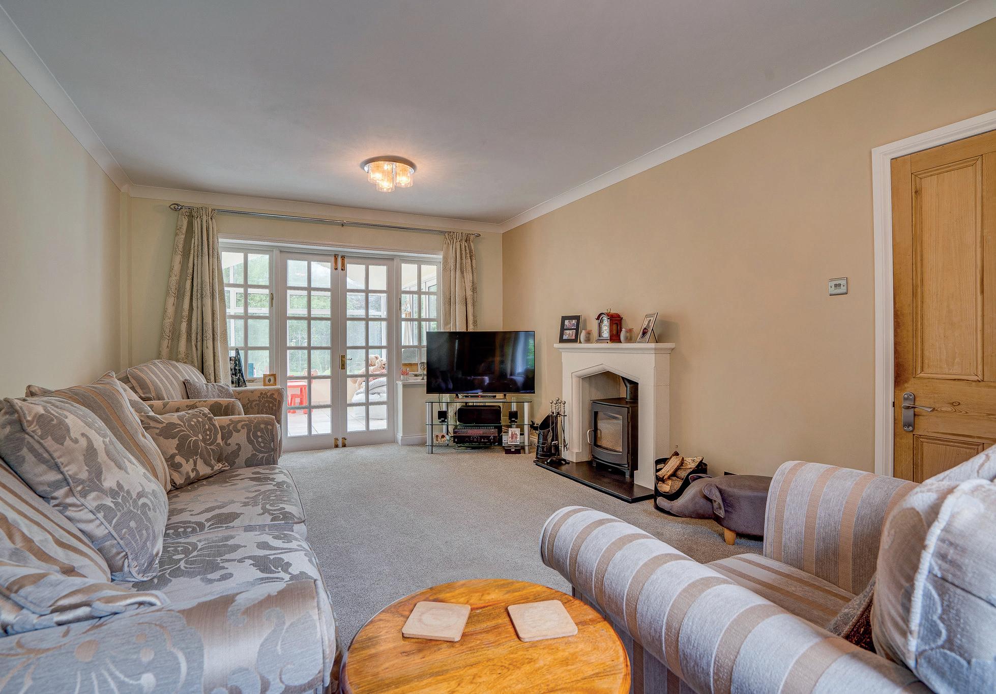 The expansive living room effortlessly extends into a luminous conservatory, where one can soak in serene garden vistas. To add warmth on cooler evenings, the living room is furnished with a soothing log burner.