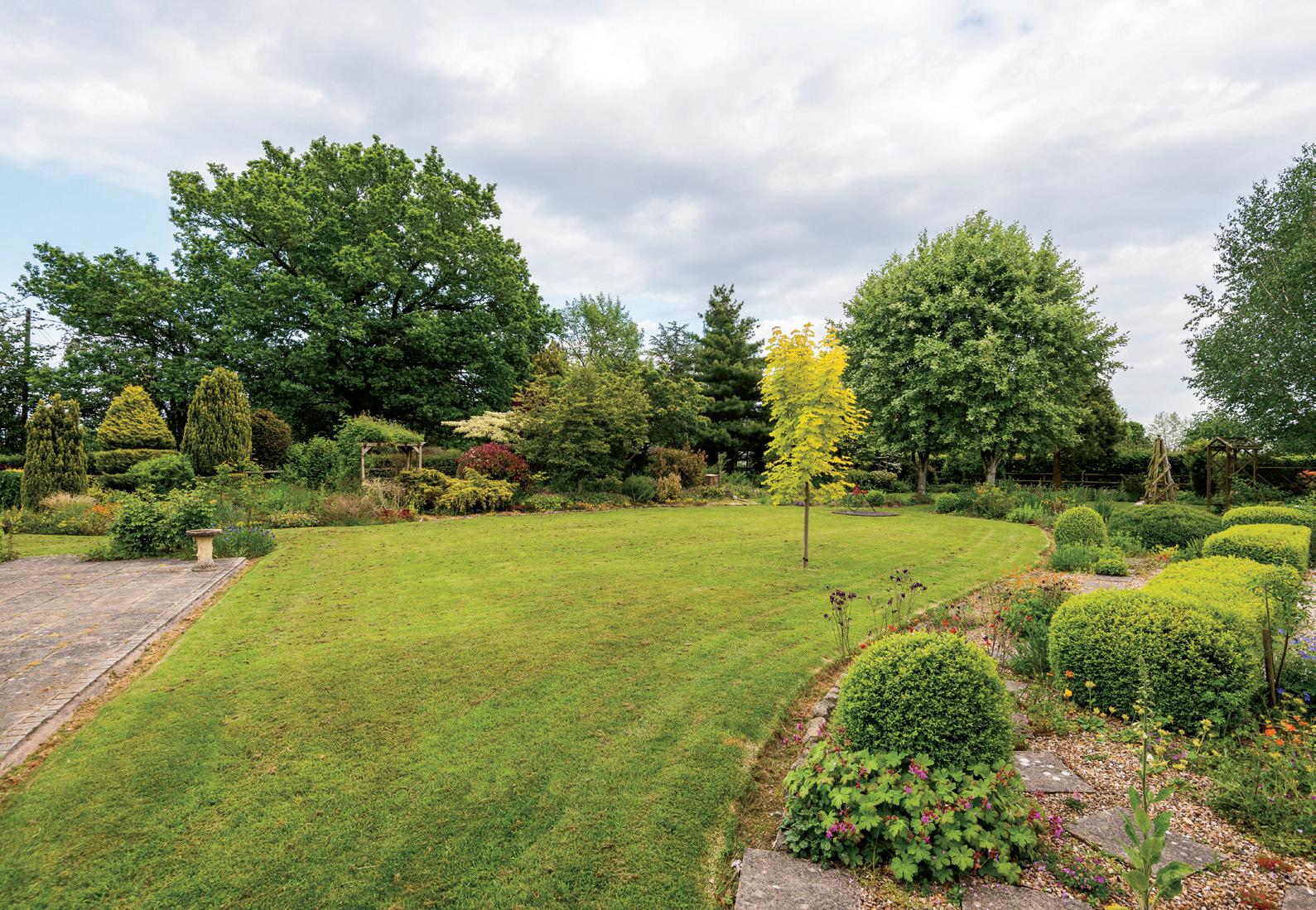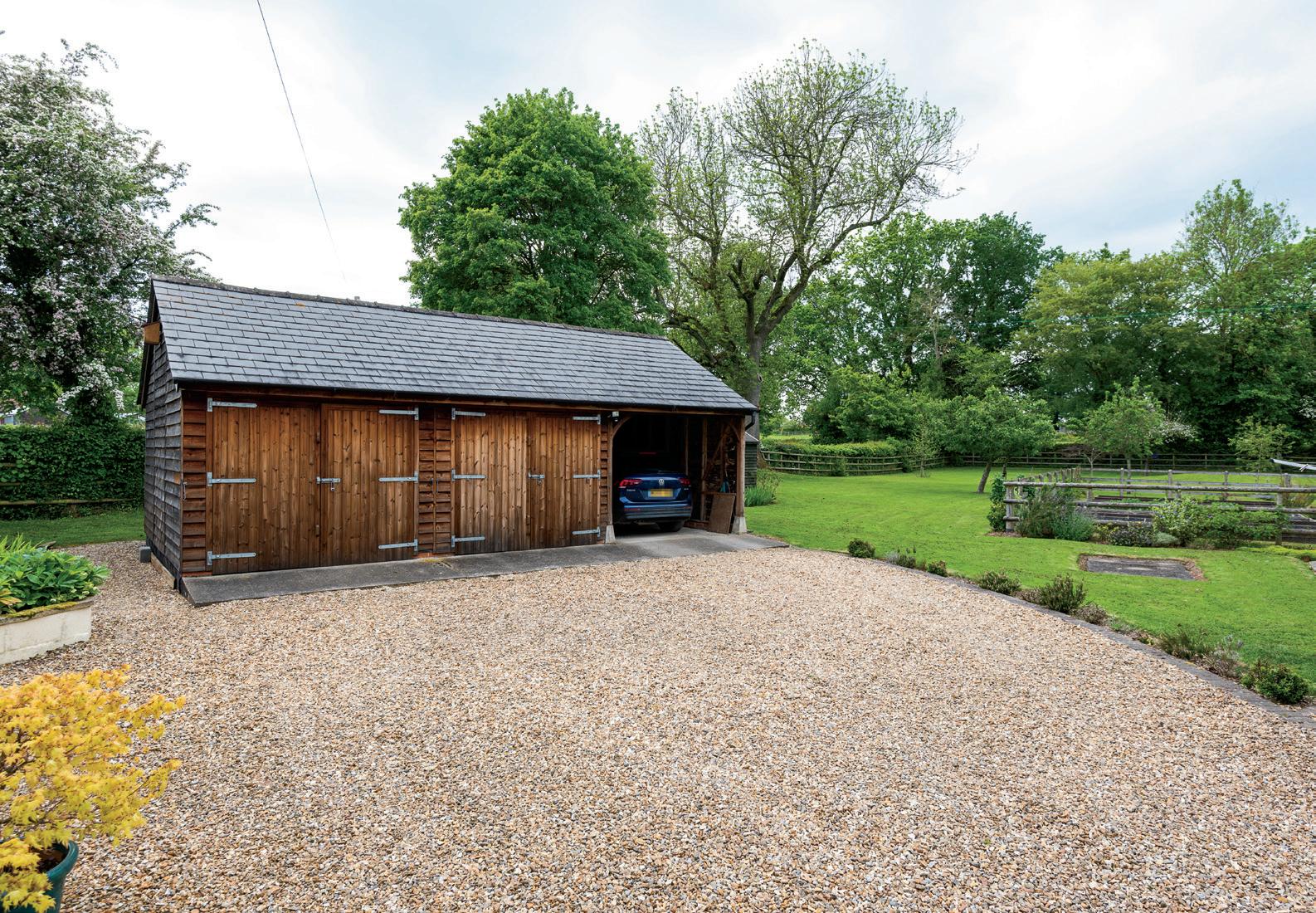 Approached through a five bar wooden gate onto ample parking and turning space providing access to the detached timber double garage with adjoining carport. To the north of the house is the working garden which includes large lawns, paddock with fruit trees, a fenced vegetable garden with raised beds, two greenhouses, two useful garden sheds (one with power and lighting), wood store and three compost bays. The working garden also has additional access off the Byway. Access to either side of the house leads to the formal garden which is located to the south of the house. The formal garden has been thoughtfully planned to create a wonderful space to enjoy the outside and includes a large paved terrace ideal for al fresco dining, large lawns, gravel pathways leading through a selection of well-stocked flower and shrub beds, a variety of different trees, a feature well and an area of decking. The outside space this property offers is a particular feature and the whole site extends to about one acre in all.