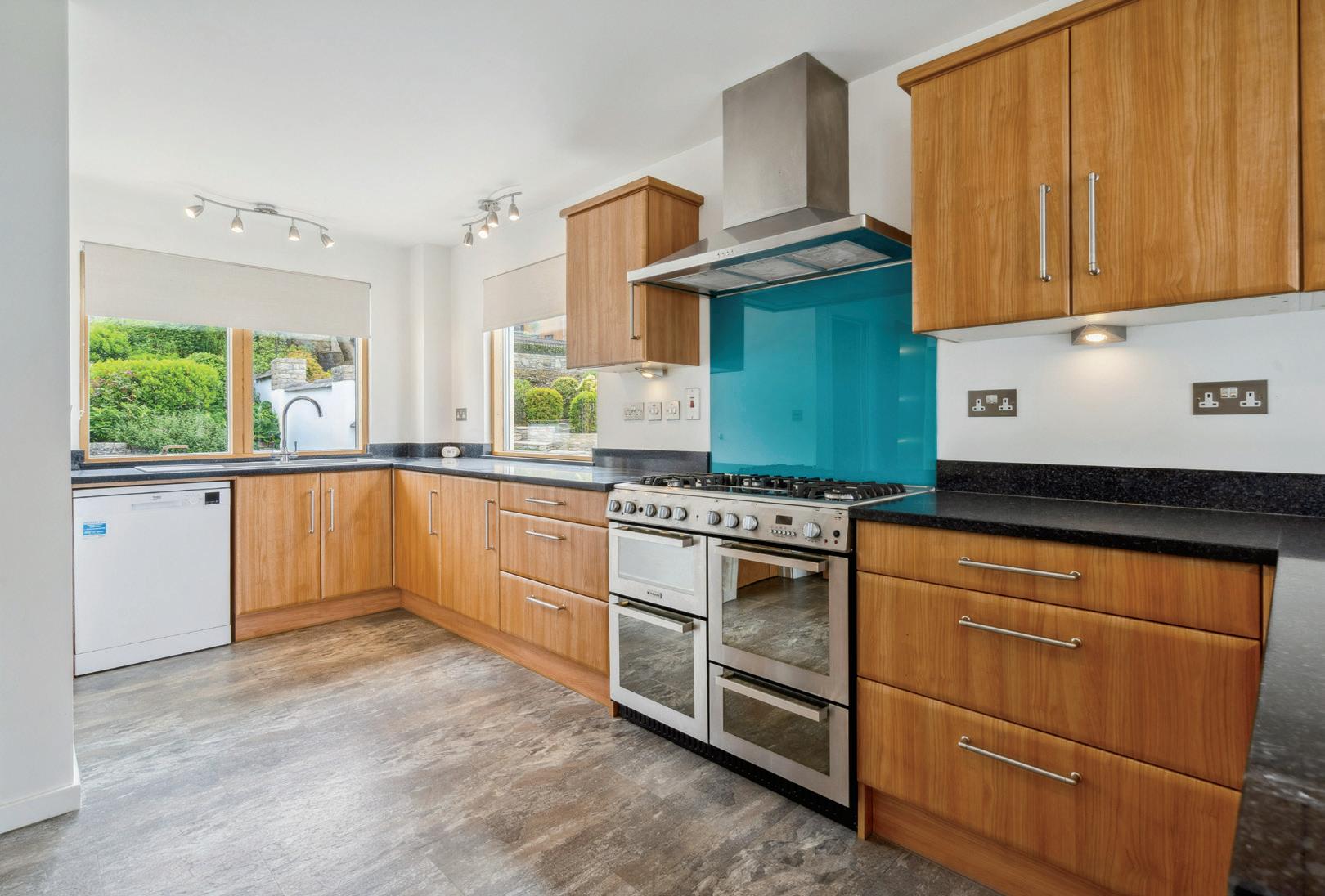 The upper floor hosts 3 bedrooms, 2 bathrooms, a sunset viewing room with the two storey vaulted hall pulling you back to the lower floor. The lower level provides additional rooms including bedroom, bathroom, storeroom, utility room and a garden room / study, with a double garage.