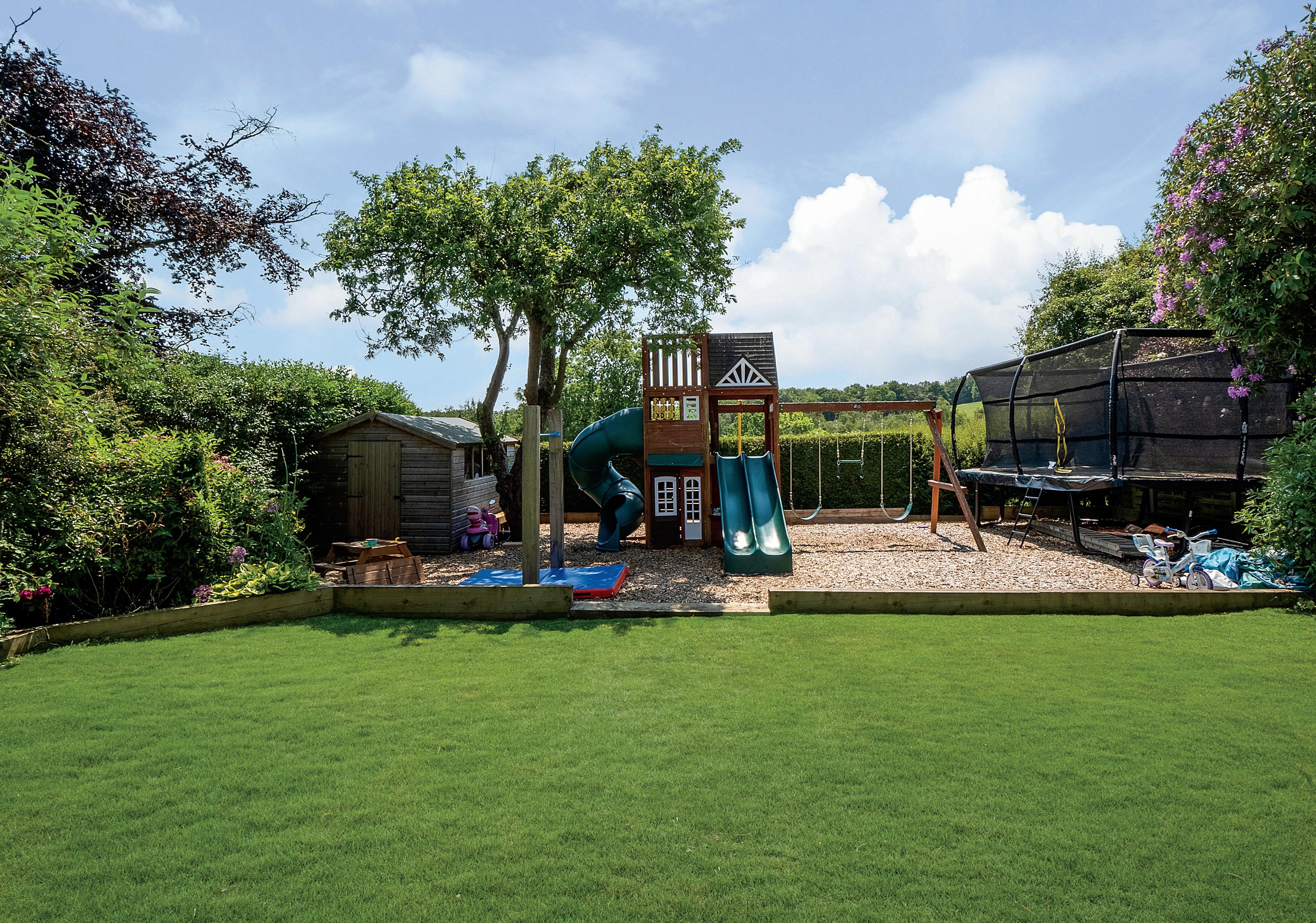 “The work continued outside too as we added a large, cantilevered decking area with a glass balustrade and steps leading down to the garden. Set on a footprint of around 0.8 acres comprising of grass, play areas, and pretty borders, there is also space for a hot tub area underneath the decking canopy which would be a superb addition.”