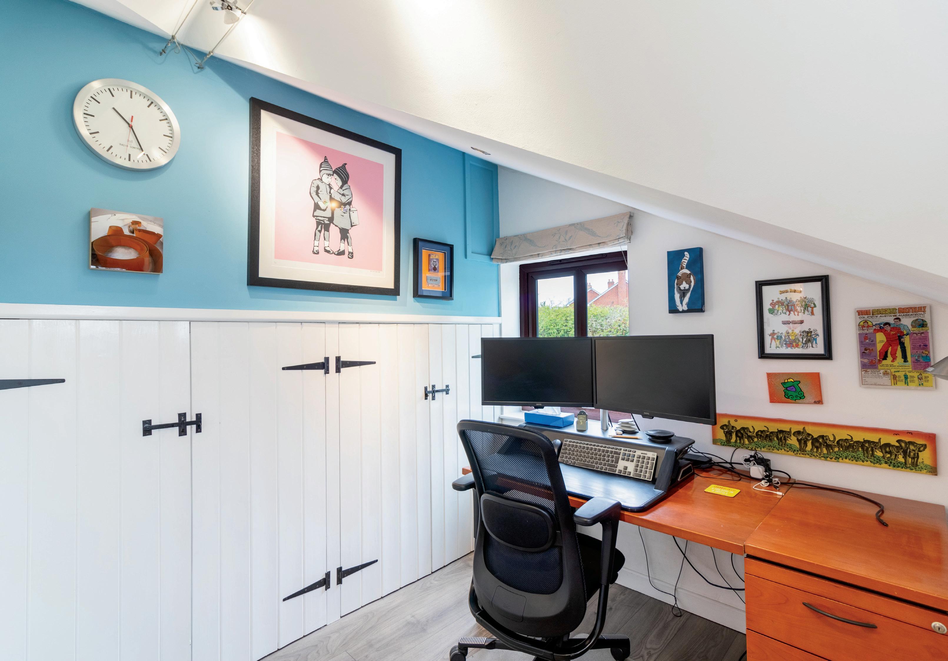 There are two further good-sized double bedrooms, one to the front aspect and one to the rear. Both also benefit from high ceilings and are equally well presented with flawless décor. The fourth bedroom overlooks the front of the property enjoying the open fields beyond and has superb storage right across one side. Previously used as a bedroom, it is currently the family office, and with ample space and dual aspect windows it offers plenty of natural light. The family bathroom is delightful, decorated in pale sage greens to the panelled walls contrasting with white to the walls and beautiful handmade tiles to the splash back. The luxury suite consists of a freestanding oval-shaped bathtub, freestanding Grohe tap and WC, together with a modern heated towel rail, smart LED fitted mirror and stripped wooden flooring. The bathroom enjoys rear view garden and paddock views.