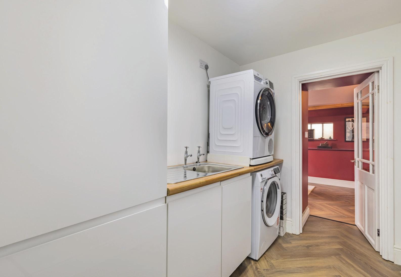 From the main hallway, the office, utility room, boot room and staircase leading up to the first floor can be found. The large home office is perfect for those needing a place to study or work. The utility room contains plenty of storage, worktops, sink and utilities for the washer and drier. A downstairs shower room sits off the boot room.