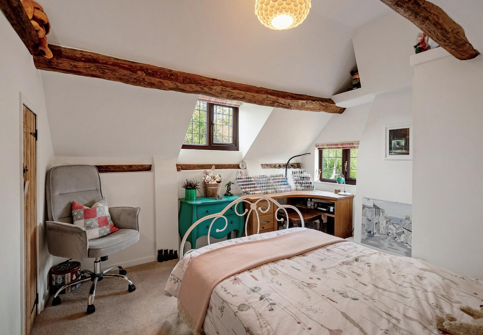 Ascending to the first floor, you’ll discover a landing brimming with character, adorned with numerous exposed beams. Here, brace and latch doors lead to the bedrooms, family bathroom, a storage cupboard, and a handy airing cupboard, ensuring ample storage space for all your needs. Descending a few steps, you’ll find the spacious master bedroom situated at the rear of the property, offering delightful views over the rear garden. Character beams adorn the walls, while windows on both the side and rear elevations invite in natural light, creating a serene a tmosphere.