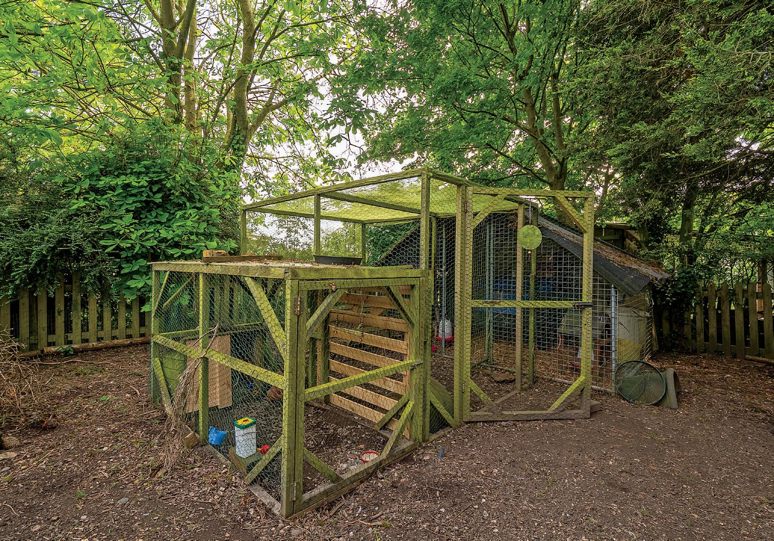 A wooden pergola leads to the lower section of the garden, where you’ll find a Victorian-style wooden greenhouse and a charming, seated arbour. A brick-paved pathway meanders through the garden, culminating at the rear section, which is currently sectioned off by a wooden picket fence housing chickens.