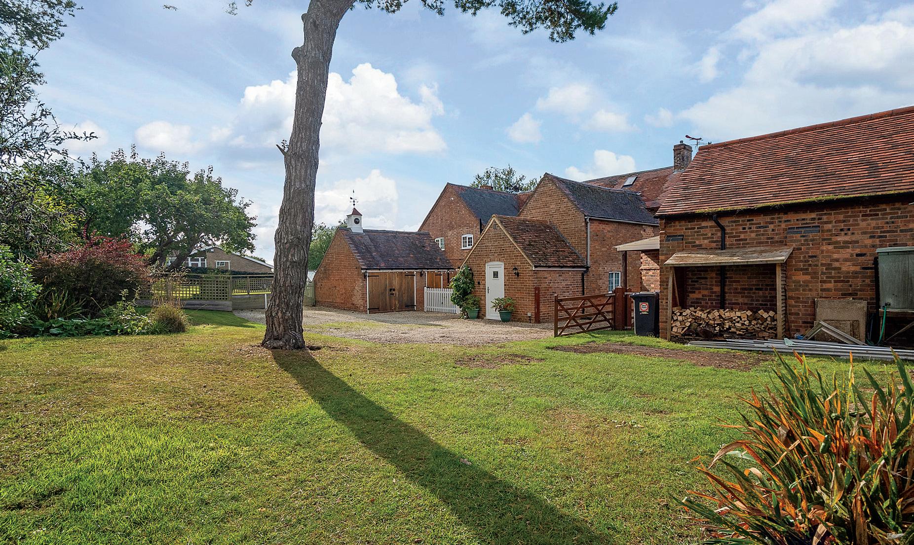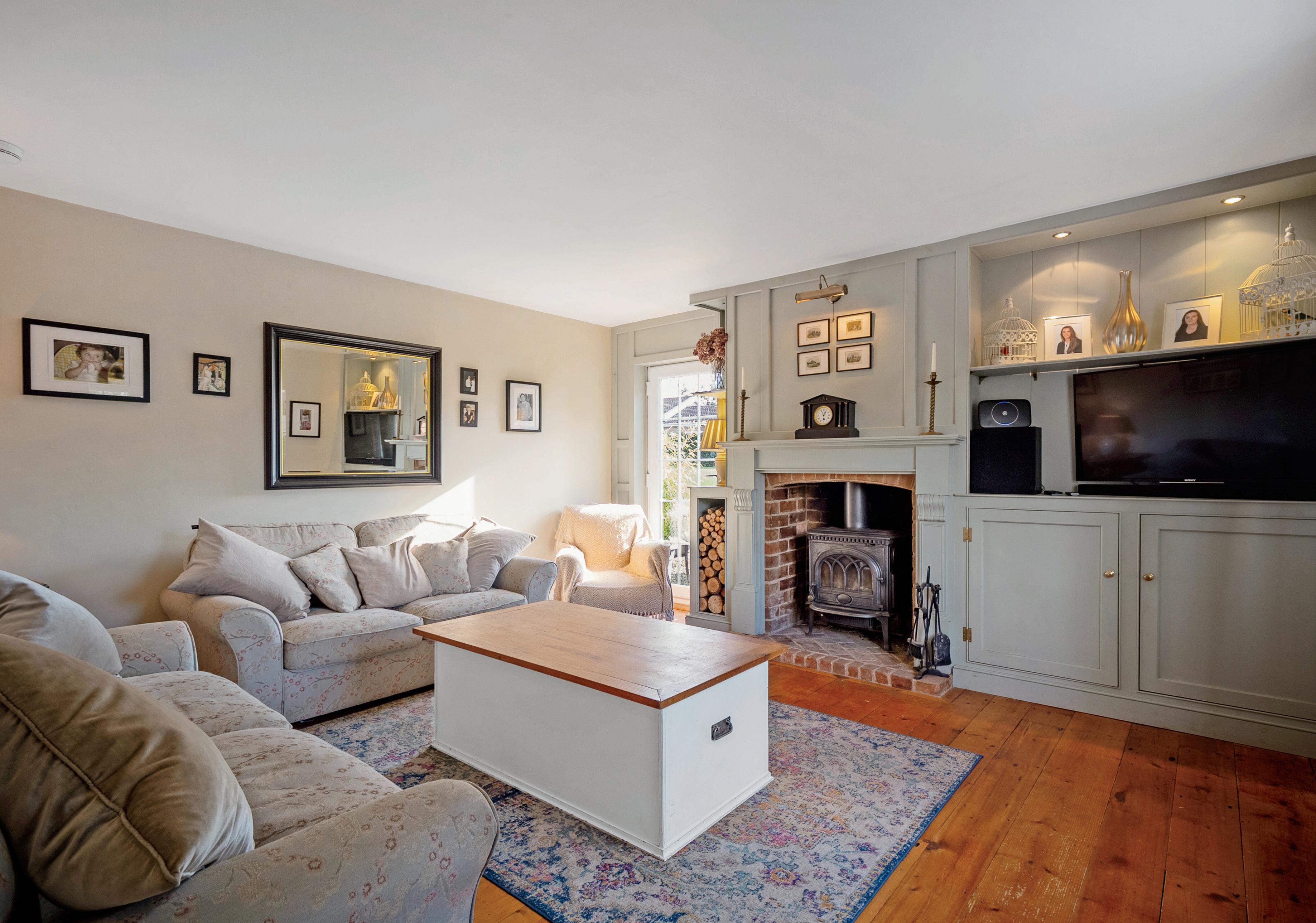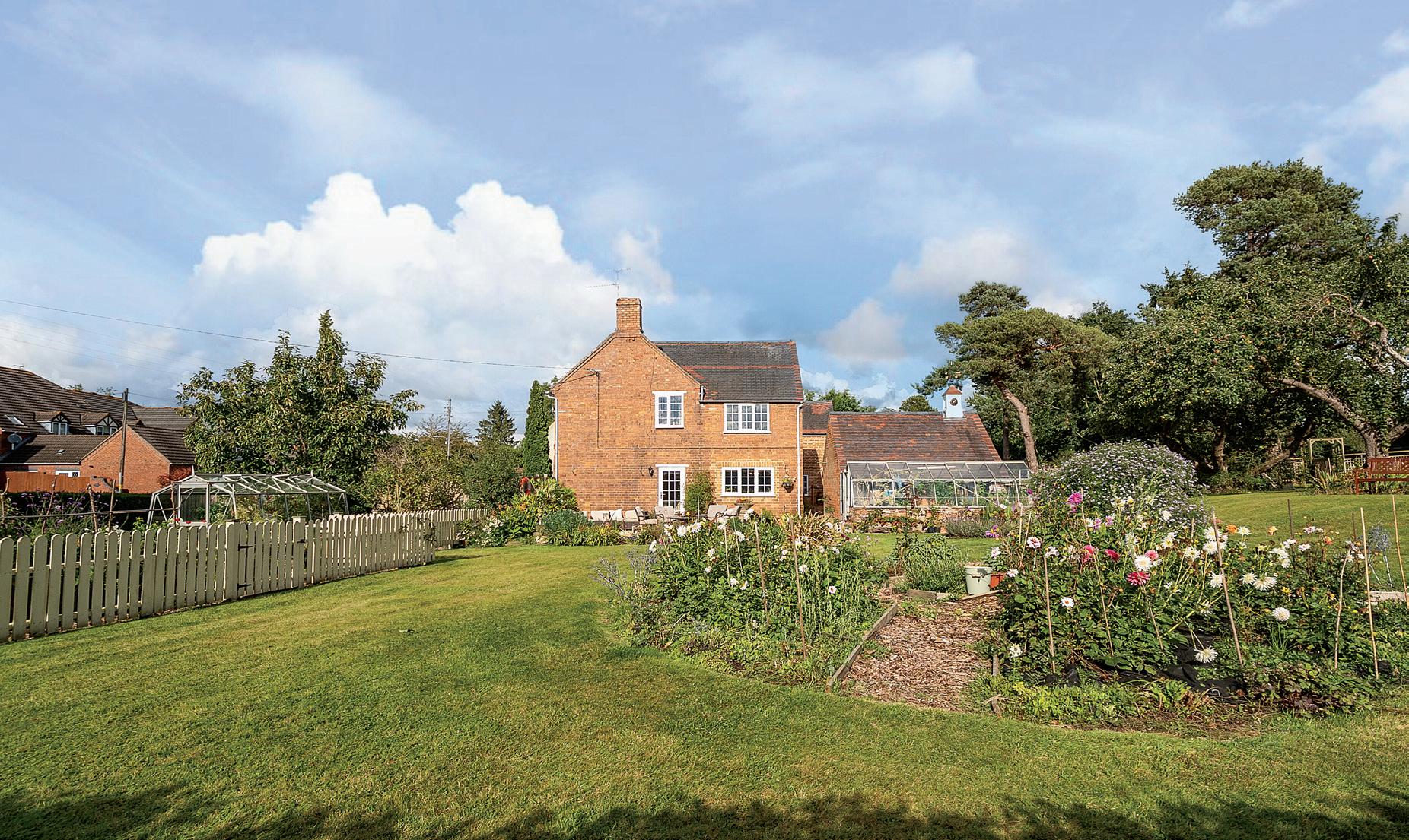 The property occupies a generous three-quarter of an acre plot with side, rear and front gardens, a variety of mature trees, a productive orchard and behind a picket fence a kitchen garden with greenhouse, potting shed and a useful outdoor kitchen. There’s a single garage with an adjoining store and a lean-to greenhouse at the rear.