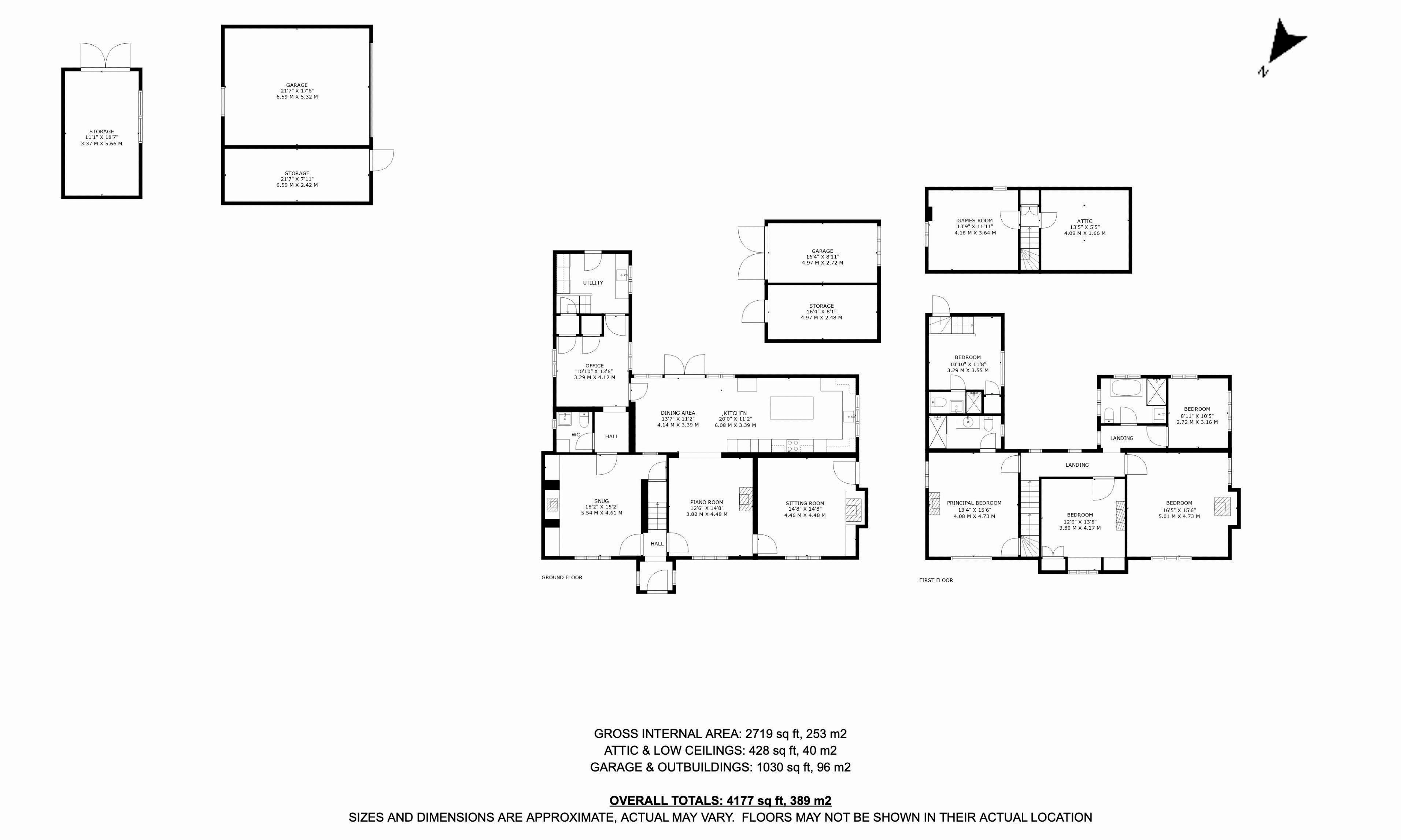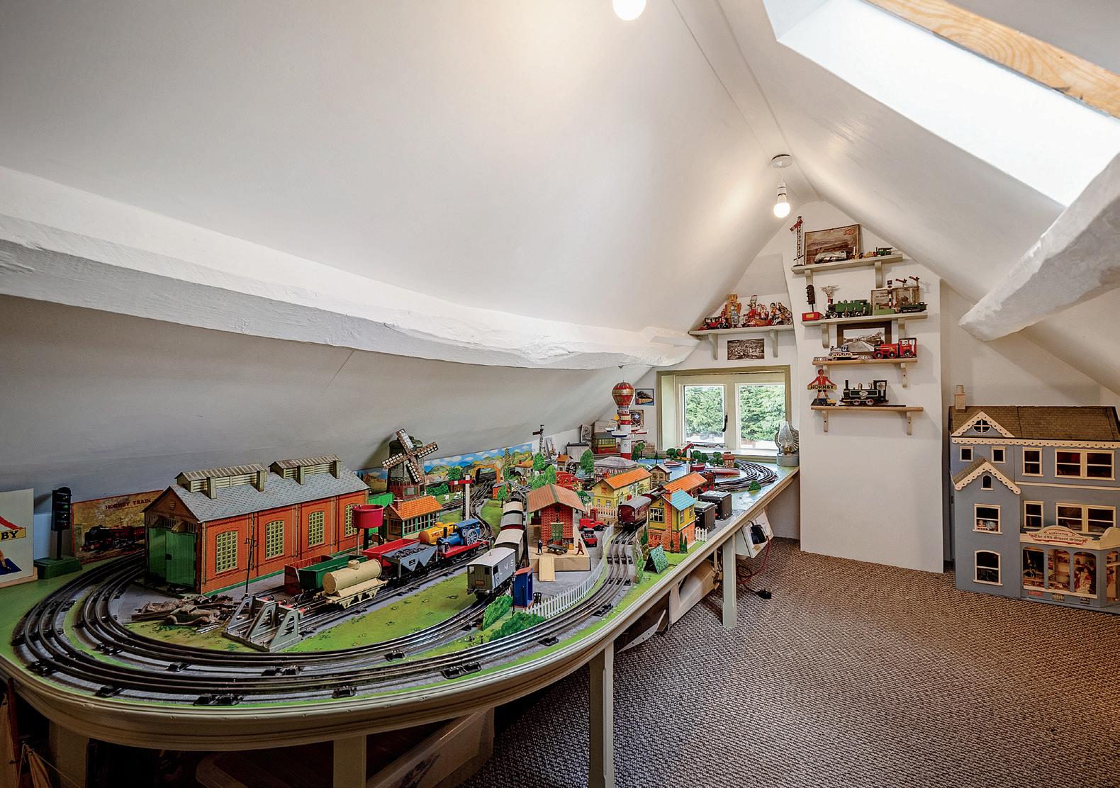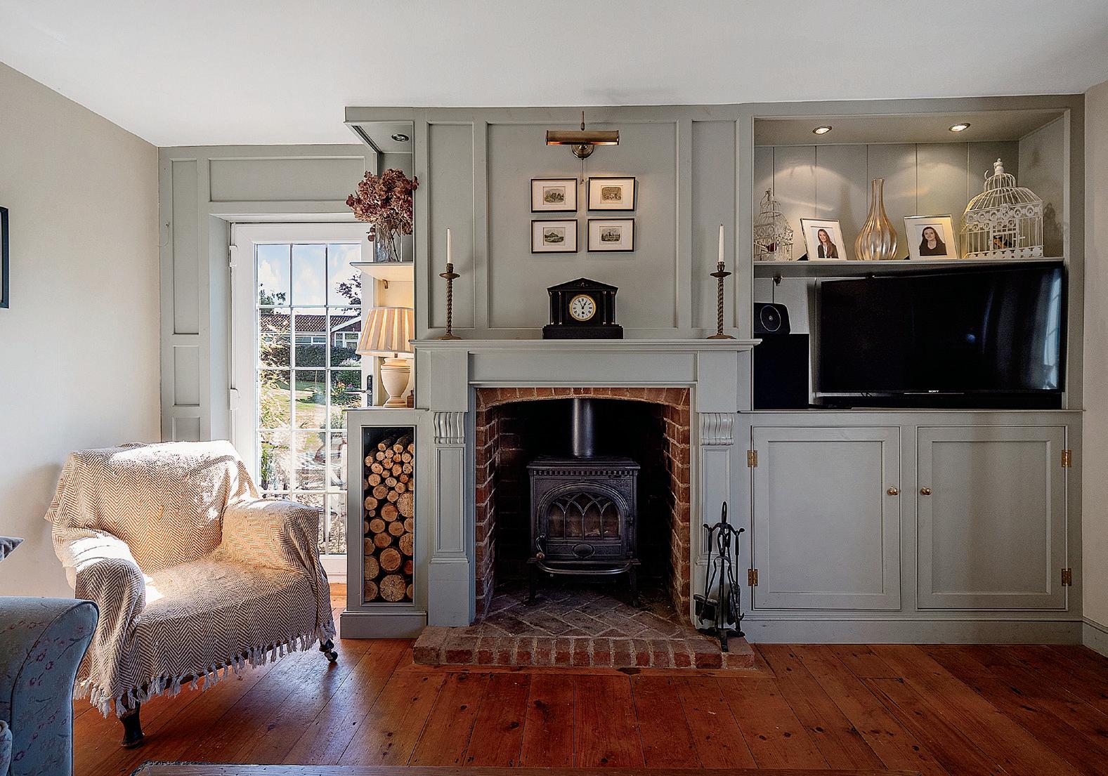 The property occupies a generous three-quarter of an acre plot with side, rear and front gardens, a variety of mature trees, a productive orchard and behind a picket fence a kitchen garden with greenhouse, potting shed and a useful outdoor kitchen. There’s a single garage with an adjoining store and a lean-to greenhouse at the rear.