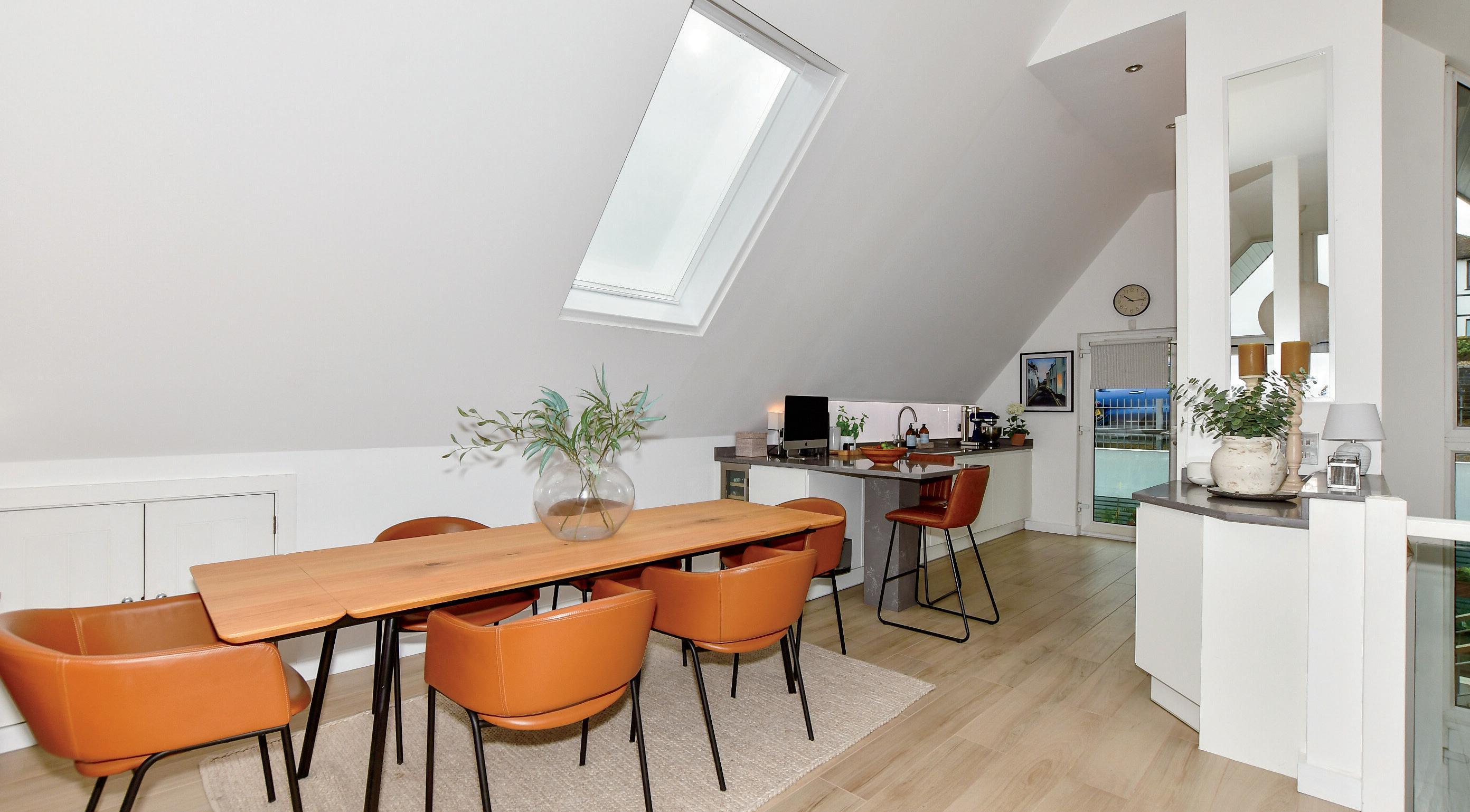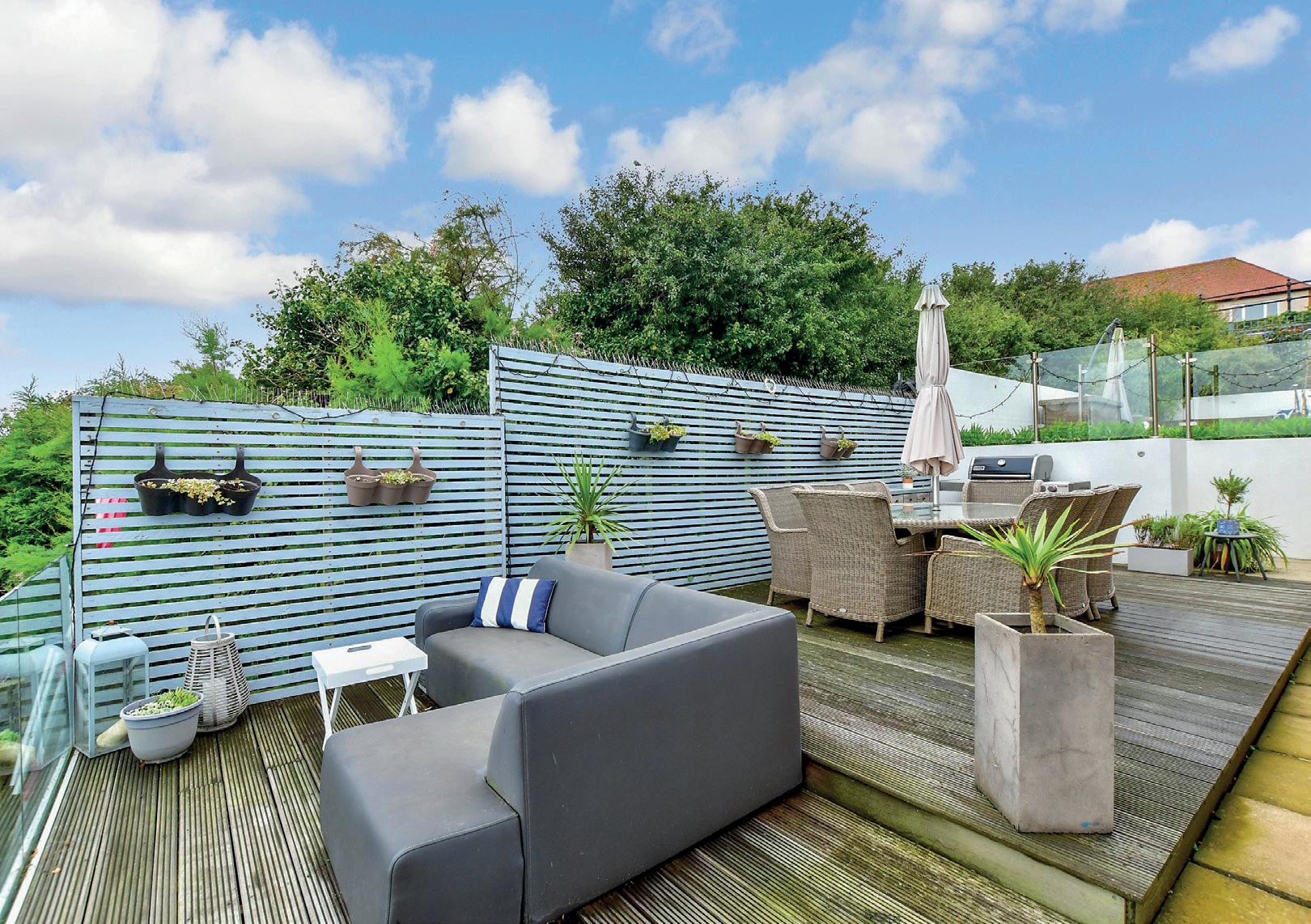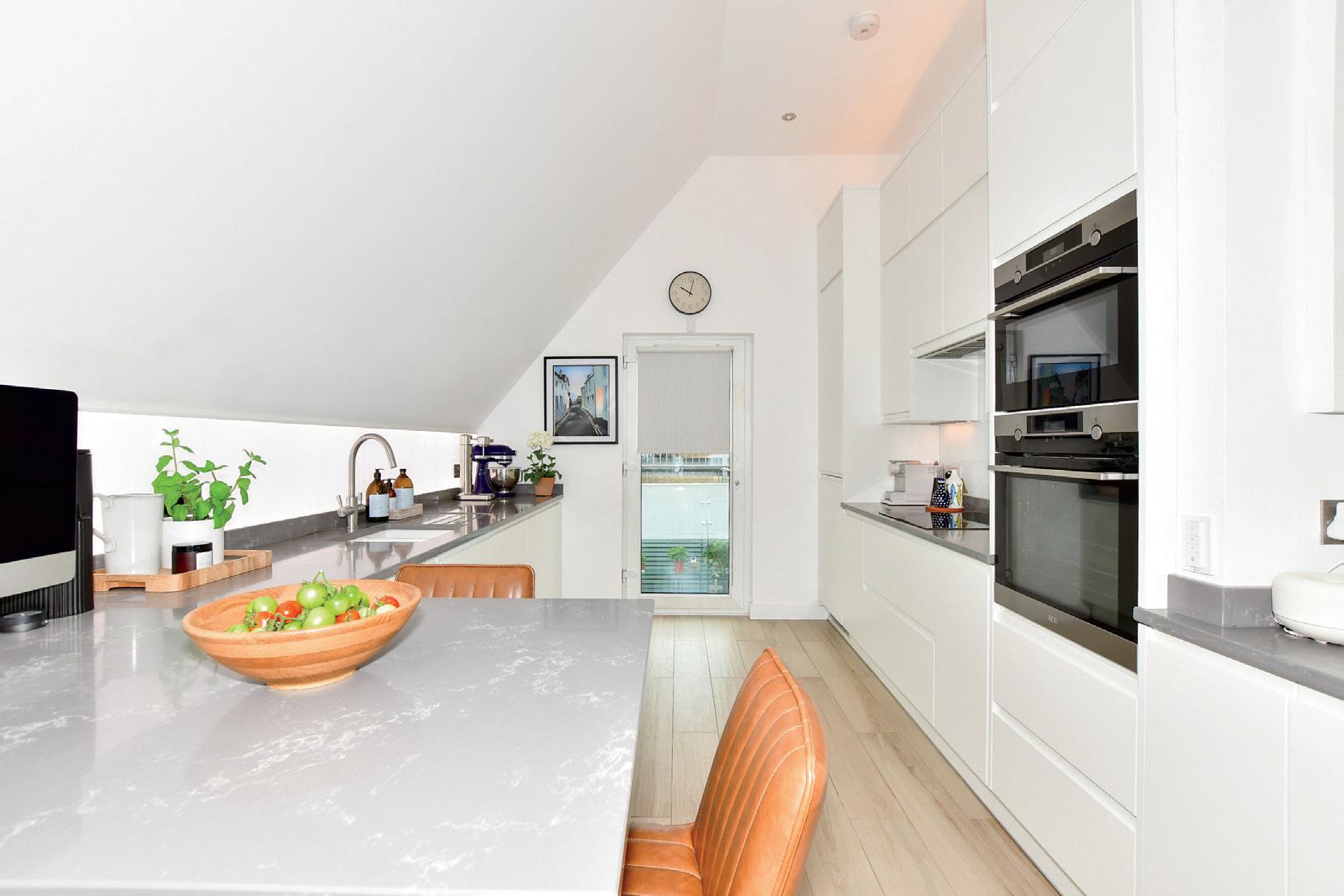 Although this detached house was only built in 2012 it has recently been refurbished by the owners to an extremely high standard, providing everything needed for a relaxed and contemporary lifestyle. Upstairs there are high quality ceramic wood effect floor tiles with underfloor heating and a stylish new kitchen area designed by the renowned family run Caroline Kitchens from Tankerton. There are top-ofthe-range flush fronted white units with quartz worktops housing a built-in cooker and combi microwave, an induction hob, fridge, freezer, wine cooler, dishwasher, washing machine and integrated Franke tap with a boiling/filtered instant water system. There is also a glazed door to a Juliette balcony, wide Velux style windows providing additional natural light, eaves storage and large dining area, plus spacious seating area sufficient to include a grand piano.