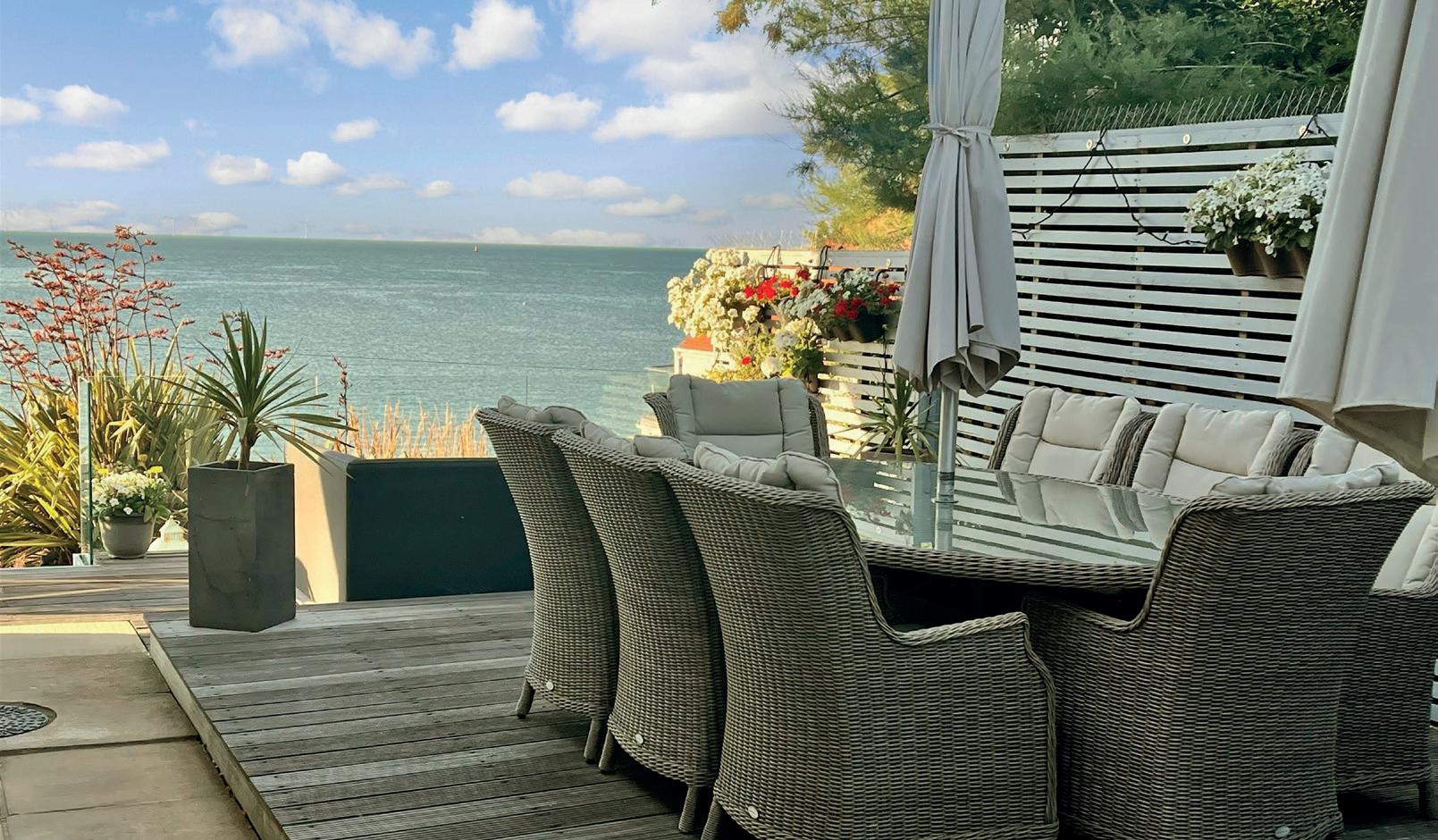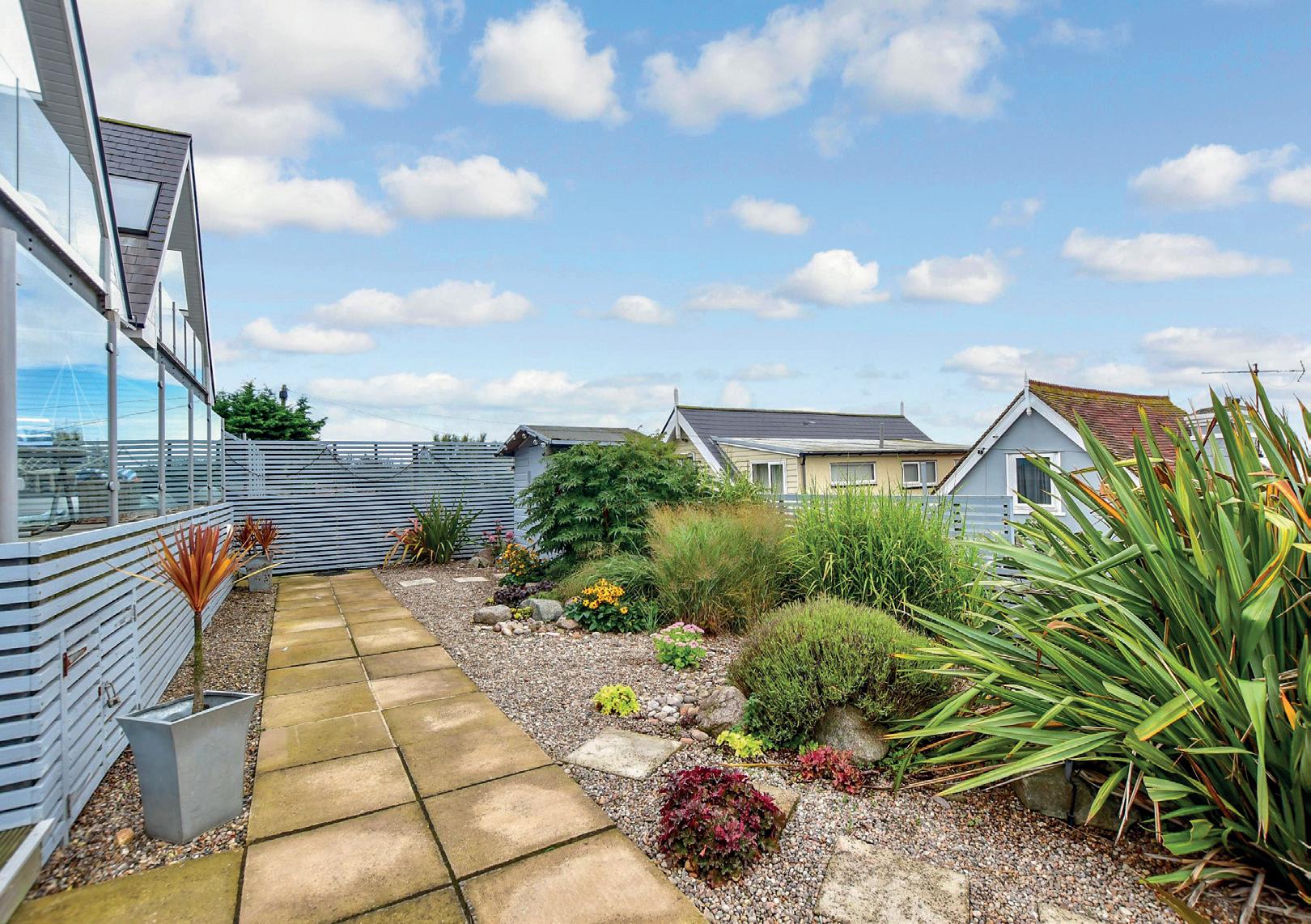 Various outside seating terraces provide for the ultimate in leisure activities enhanced by a gate from the garden which leads you down to the Saxon Shore Way and tranquil Hampton beach. Designed by Andrew Wall of The Landscape Practice, the various terraces maximise the use of every space and overlook the charming, low maintenance seaside garden interspersed with shrub beds, sea grasses and beach hut/ shed. A paved pathway wraps around the property providing access to the various terraces. There is a spacious side decked terrace for relaxing in the sunshine and alfresco dining as well as a superb upper decked terrace above a gabion retaining wall. All terraces have frameless glass balustrades providing shelter wherever you sit whilst you enjoy the excellent sea views. In addition, five sea-blue sheds have been cleverly concealed under the external steps so there is plenty of storage space available.