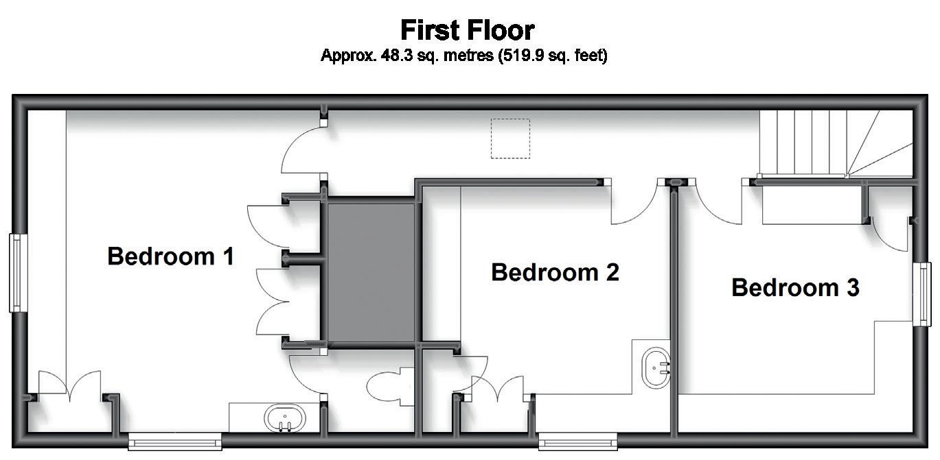 Bedroom 1 14’7 x 12’2 En-Suite Toilet Bedroom 2 11’3 x 10’ Bedroom 3 11’2 x 10’8