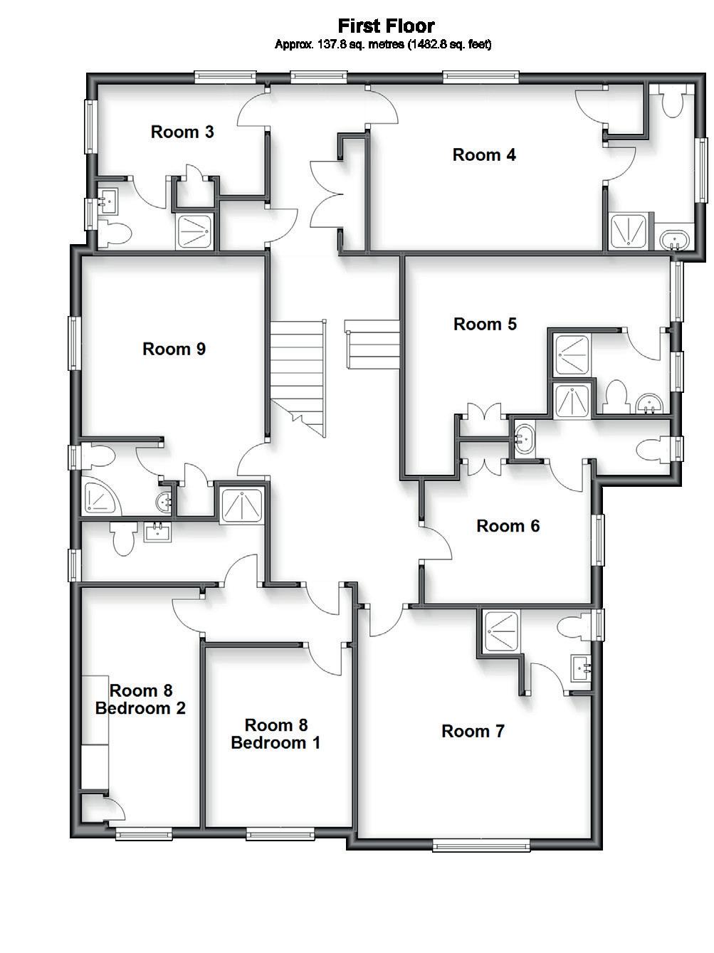 Off the first-floor galleried landing there are seven bedrooms including a family suite with a double and single room as well as a bathroom, two large doubles with en suite showers and fitted cupboards, two standard en suite doubles and two en suite singles. All the rooms are individually designed and create a family friendly ‘home-from-home’ atmosphere.