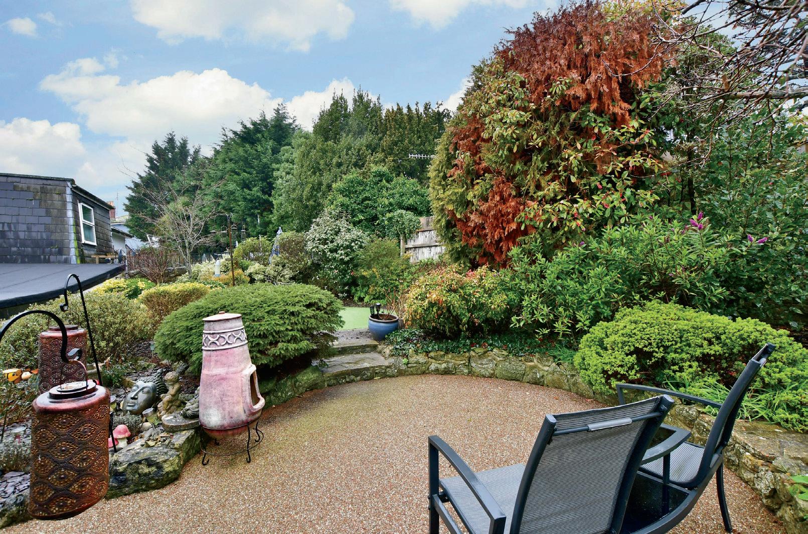 Outside there are steps up to a circular resin patio that is surrounded by mature shrubs and trees and a circular artificial turn lawn providing pleasant places for both owners and guests to enjoy relaxing in the sunshine. The garage is partitioned to provide a secondary utility room with a commercial dryer and a large chest freezer as well as plenty of storage in the roof space.