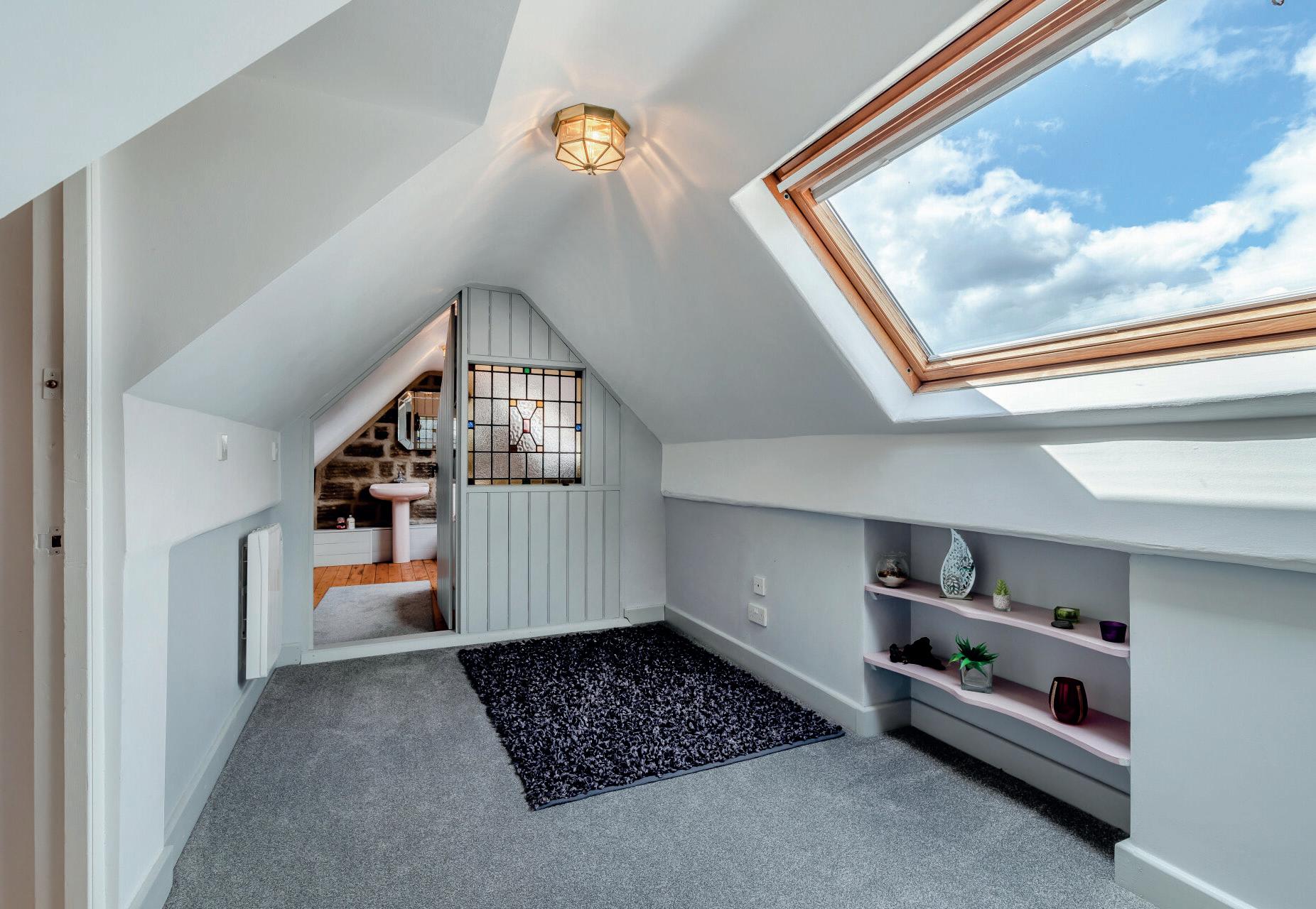 From the landing a staircase gains access to the second floor bedroom attic room, which has a Velux Skylight window commanding stunning views and, as with the other rooms, has original stone and beam work on display.