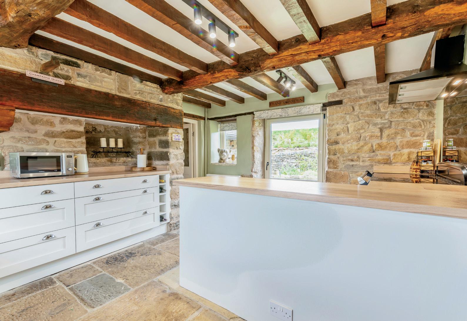The living kitchen occupies a central position to the home; a beautiful room with retained period features on display including exposed beams to the ceiling, a Yorkshire stone floor and exposed stonework to the expanse of one wall with a door opening directly onto a southeast facing garden, whilst a window commands long distance views across the valley. Presented with a comprehensive range of bespoke furniture, with work surfaces incorporating a stainless-steel sink unit; a compliment of appliances includes a Rangemaster Stove, which comprises a double oven and grill, with a six-ring electric hob, a glass splash back and an extractor canopy over, a fridge freezer and a dishwasher. There is a feature stone chimney breast to one wall with an inset beamed lintel and two additional windows overlooking the rear garden.