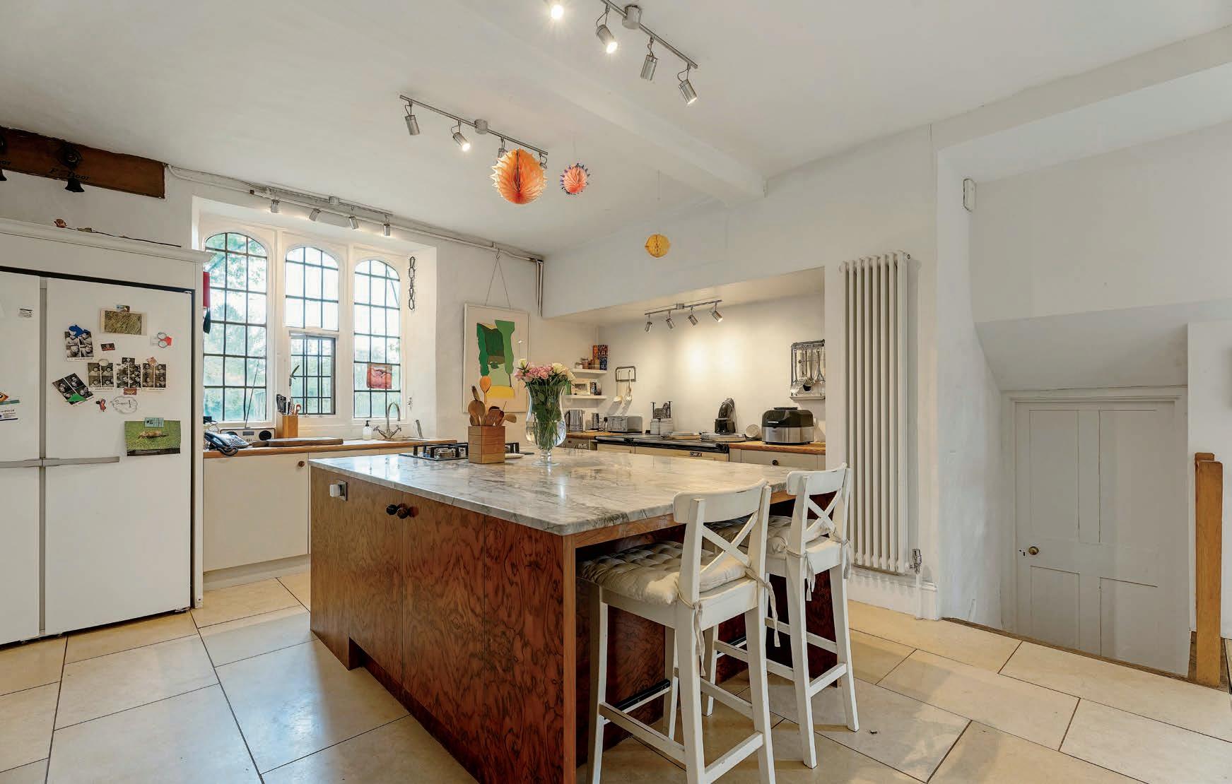 There are plenty of wonderful reception rooms that could be used in a variety of ways. The drawing room and dining room have floor to ceiling Georgian windows and doors to the front garden. Both rooms have a grandeur befitting of its period as well as being flooded with natural light and beautiful fireplaces. There is also a fantastic attached barn, ideal as a games room, gym or a studio / library and a beautifully bright dual-aspect office which is ideal as an art studio. There is a super kitchen / dining room (with access to the cellar) as well as a boot room and laundry room.