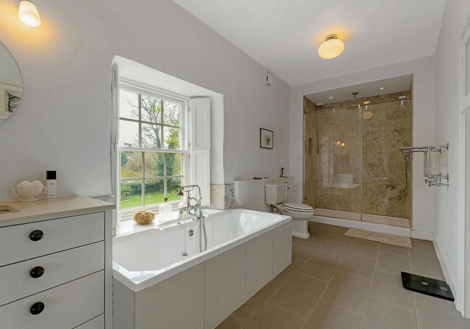 I fell in love with the quality of light in the house as there is a double aspect in most rooms offering a huge amount of natural light, and even though I didn’t realise it at the time, what would also bring me great comfort due to the width of the walls is the coolness of the house in the summer, so in heat waves we are deliciously cool inside, whilst in winter it is naturally warm. I love the sumptuous ensuite bathroom with underfloor heating and a view from the bath.