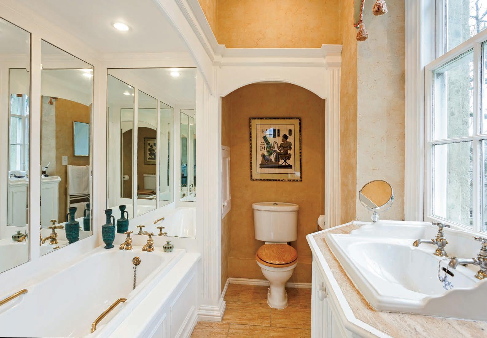 The principal bedroom suite has sash windows with inset seats beneath overlooking the gardens, detailed wood panelling to the walls and a walk-through dressing room which has windows to two aspects and gains access to the en-suite bathroom presented with a four-piece suite.