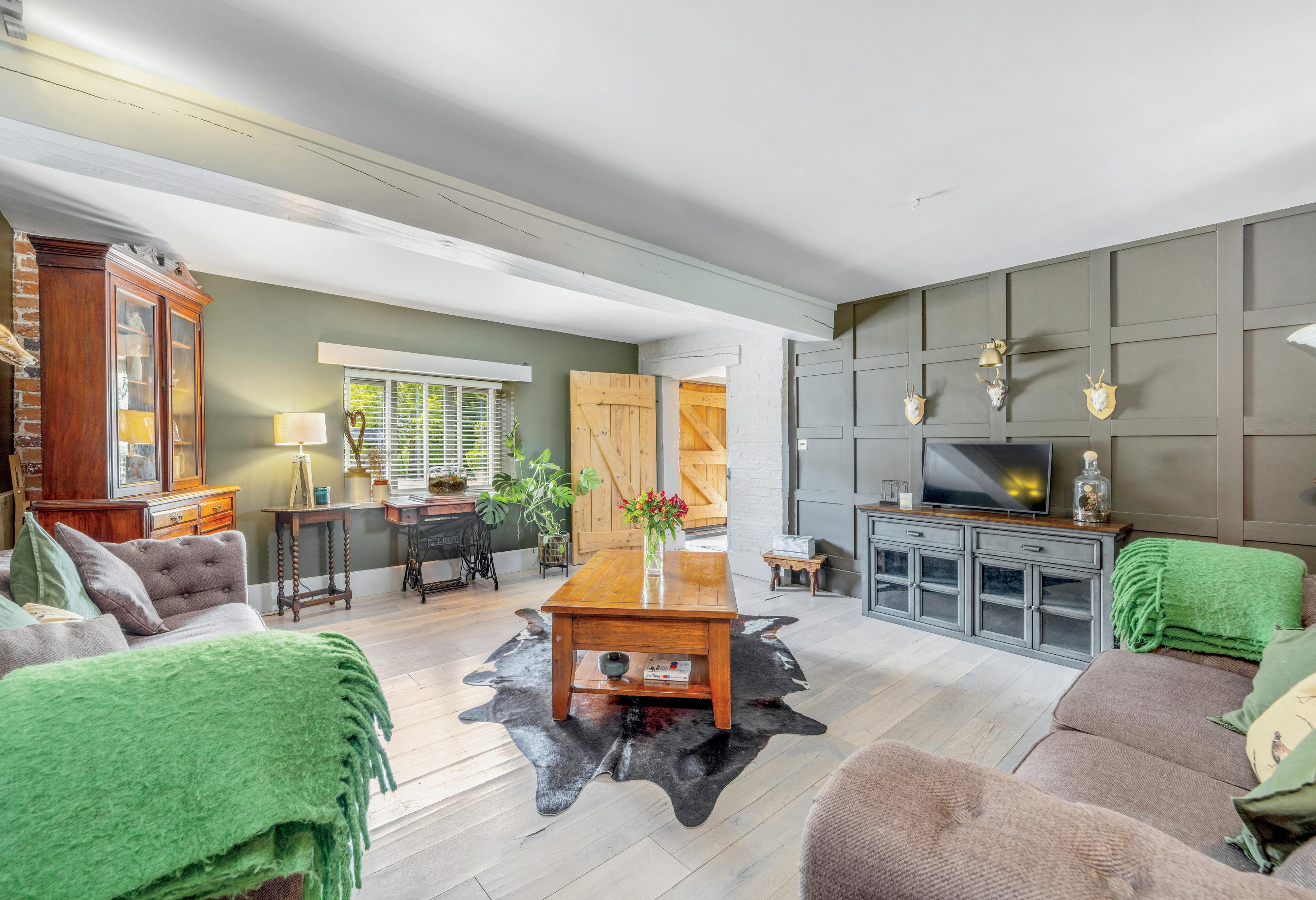 An exemplary conversion of adjoining barns, one a two storey, the other a single storey with mezzanine, is presented in immaculate order and fitted with top quality materials in a very appealing modern rustic style. With a large separate barn incorporating an office, a gym, garaging and expansive workshop space, and more than six acres of delightful grounds and grazing, the property offers an idyllic rural lifestyle, ideal for equestrians, and close to excellent schools and good road and rail links.