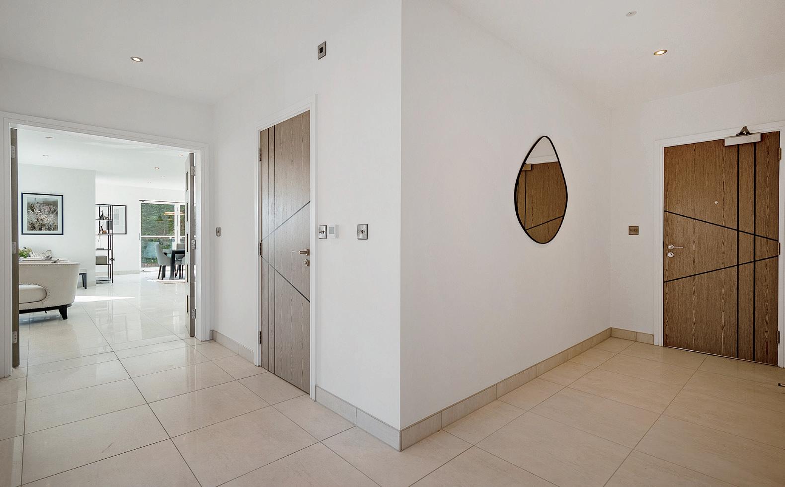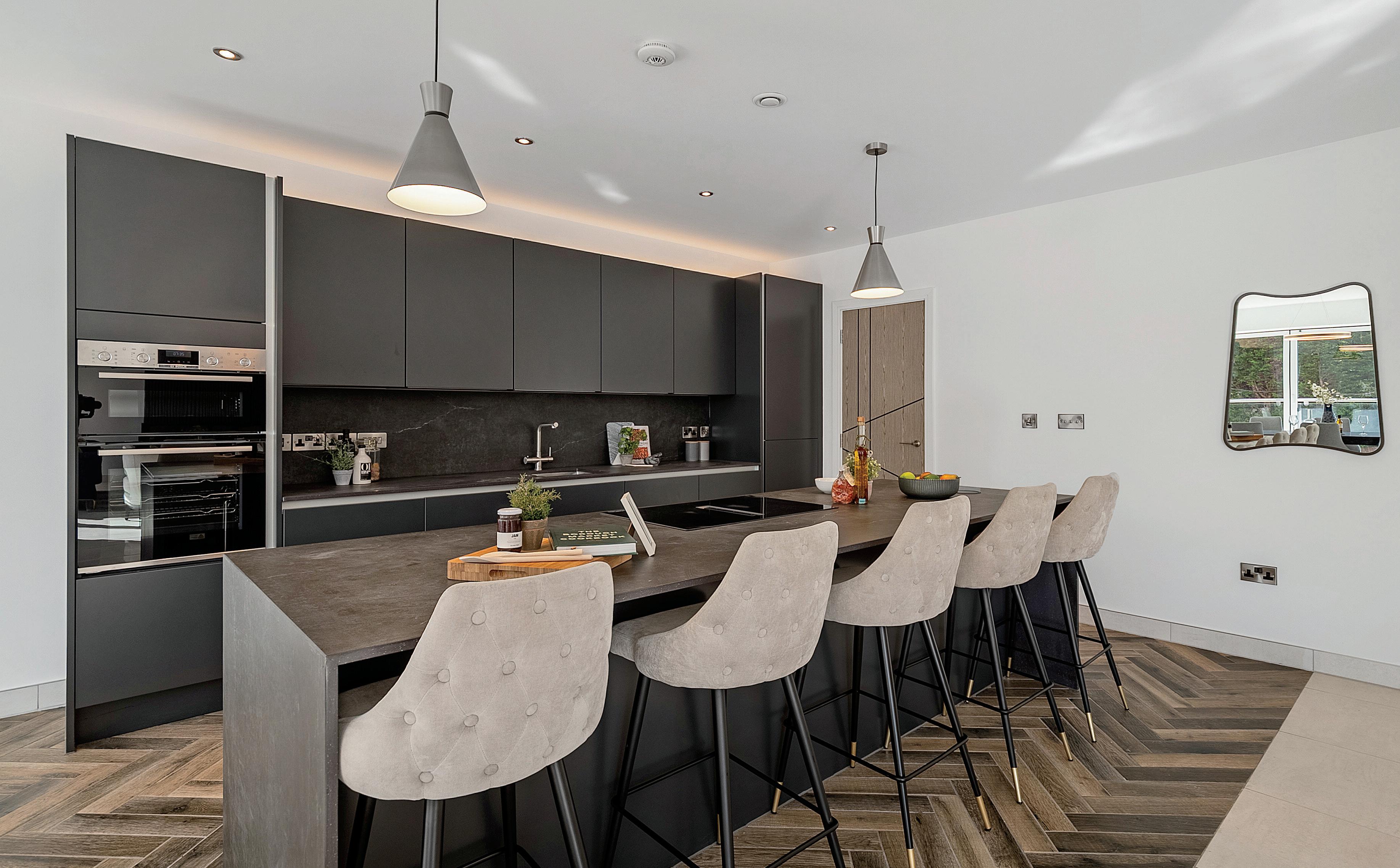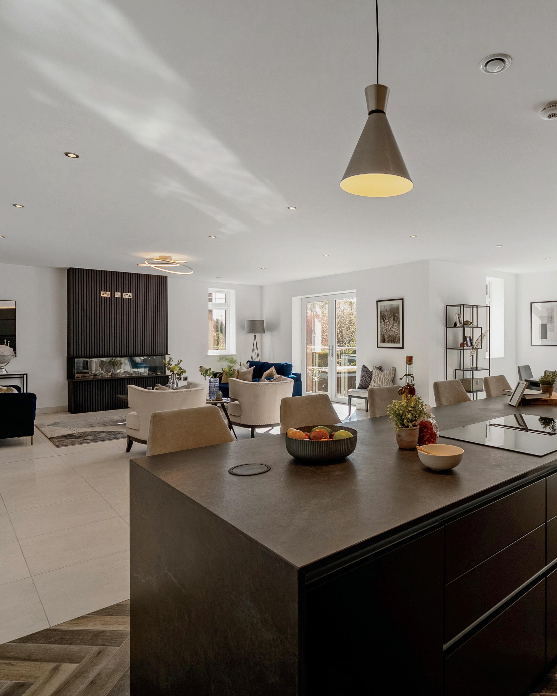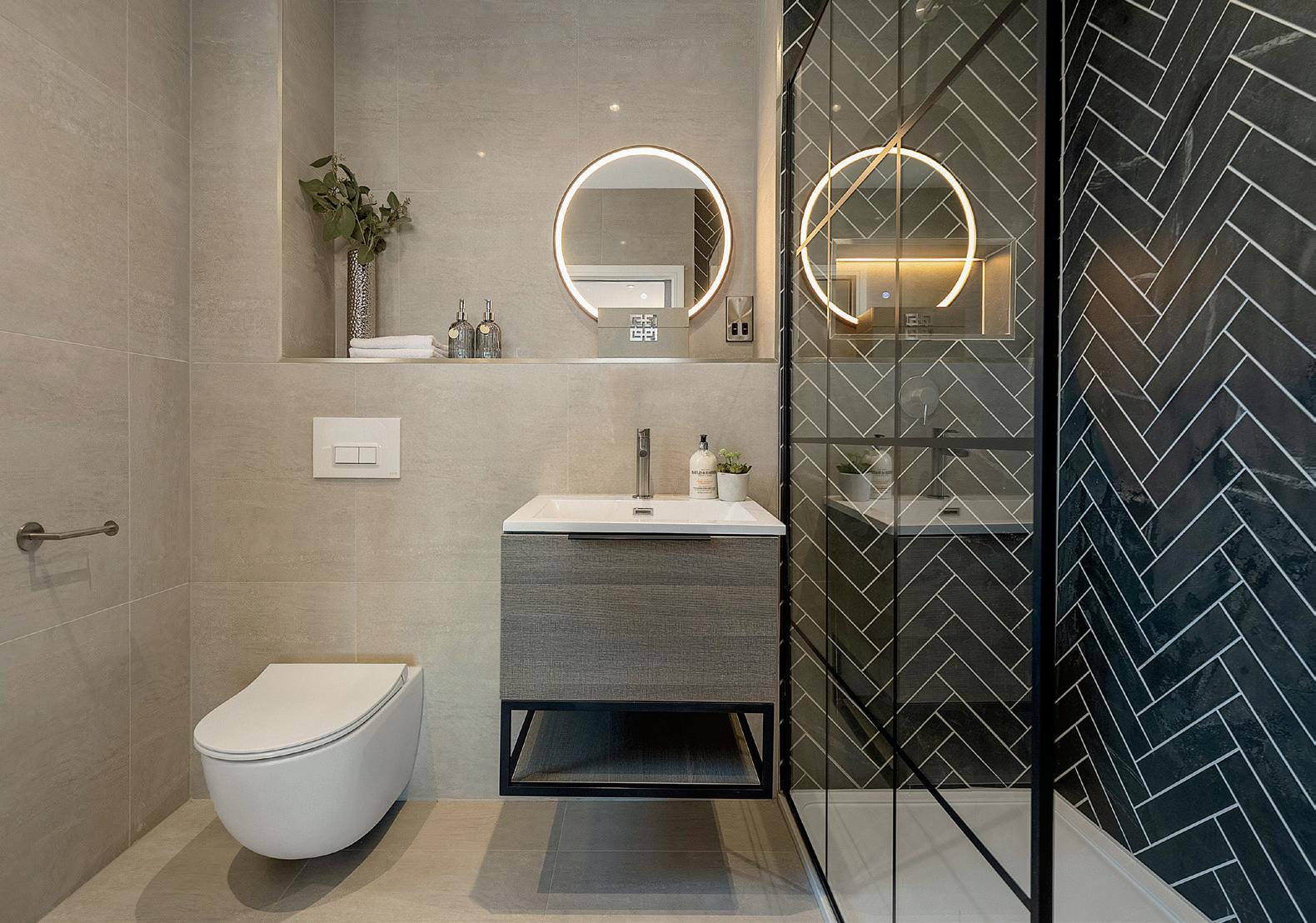 Throughout this exceptional development, luxury abounds in every detail. Dekton surface worktops with waterfall edges, Neff integrated appliances, and wine coolers grace the stateof-the-art kitchens, where dedicated task stations, stylish workhorse sinks, and cutting-edge organisation solutions cater to every culinary need. Elegant brushed stainless steel light switches, sockets, and door ironmongery add a refined touch to each room, while underfloor heating enhances the entire premises.