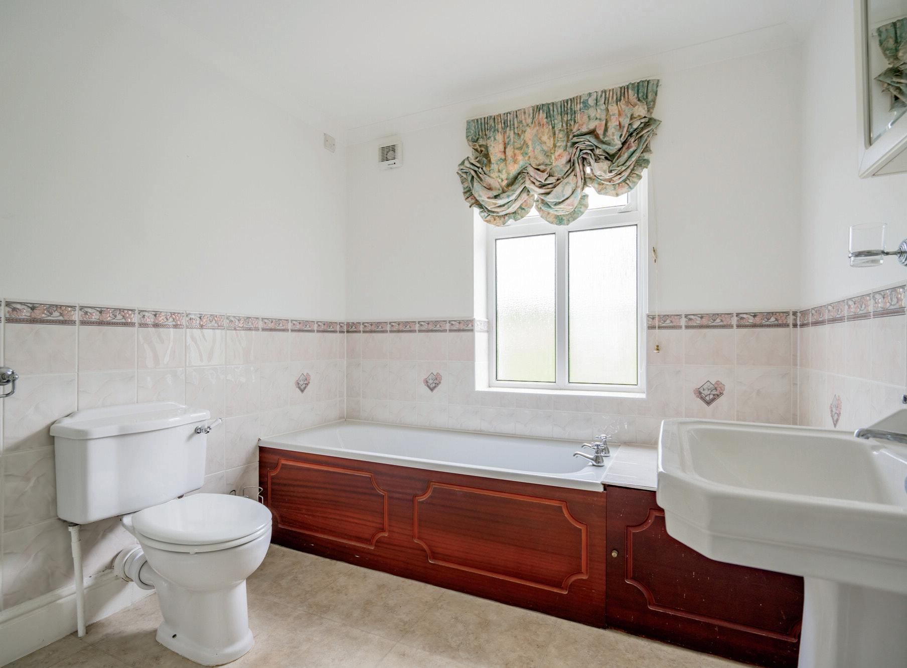 Next you will find bedroom four, a double bedroom laid with carpeting. Abundant natural light streams through the large side window, enhancing the room’s inviting atmosphere. This room also offers the convenience of a built-in wardrobe, complete with fitted hanging rails.