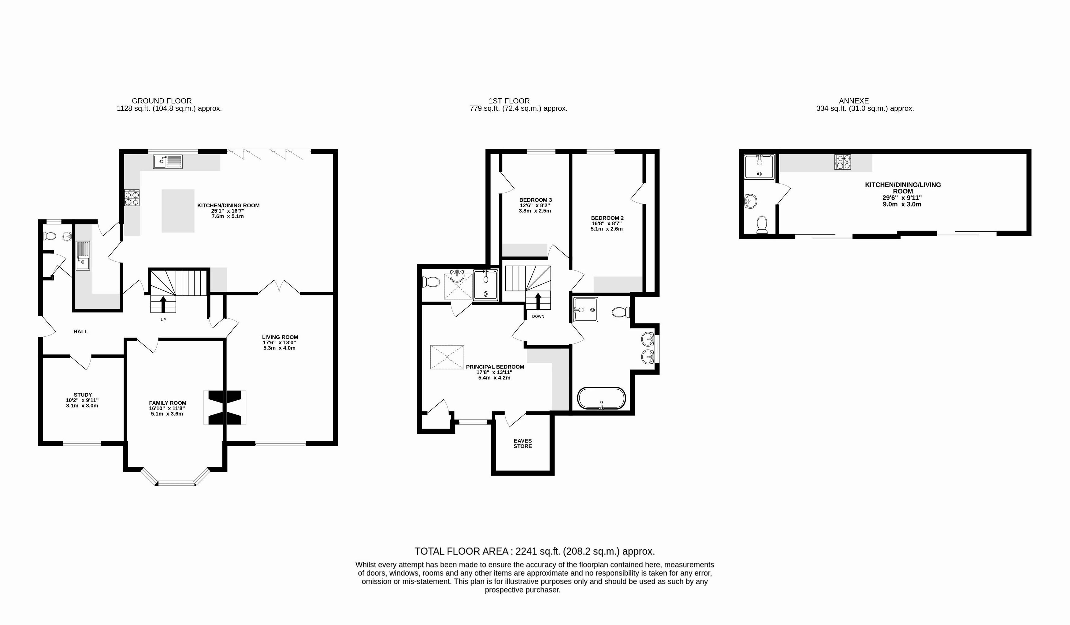 Upstairs the principle bedroom suite includes a spacious shower room and a large storage area within the eves. There are two further good sized bedrooms and a large family bathroom.