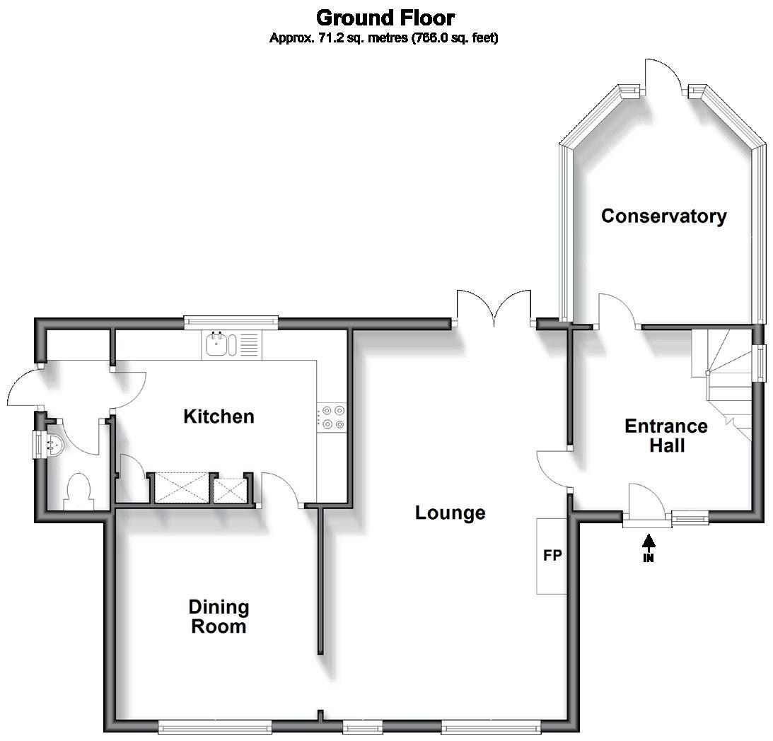 Conservatory: 10’8 x 9’6 (3.25m x 2.90m)