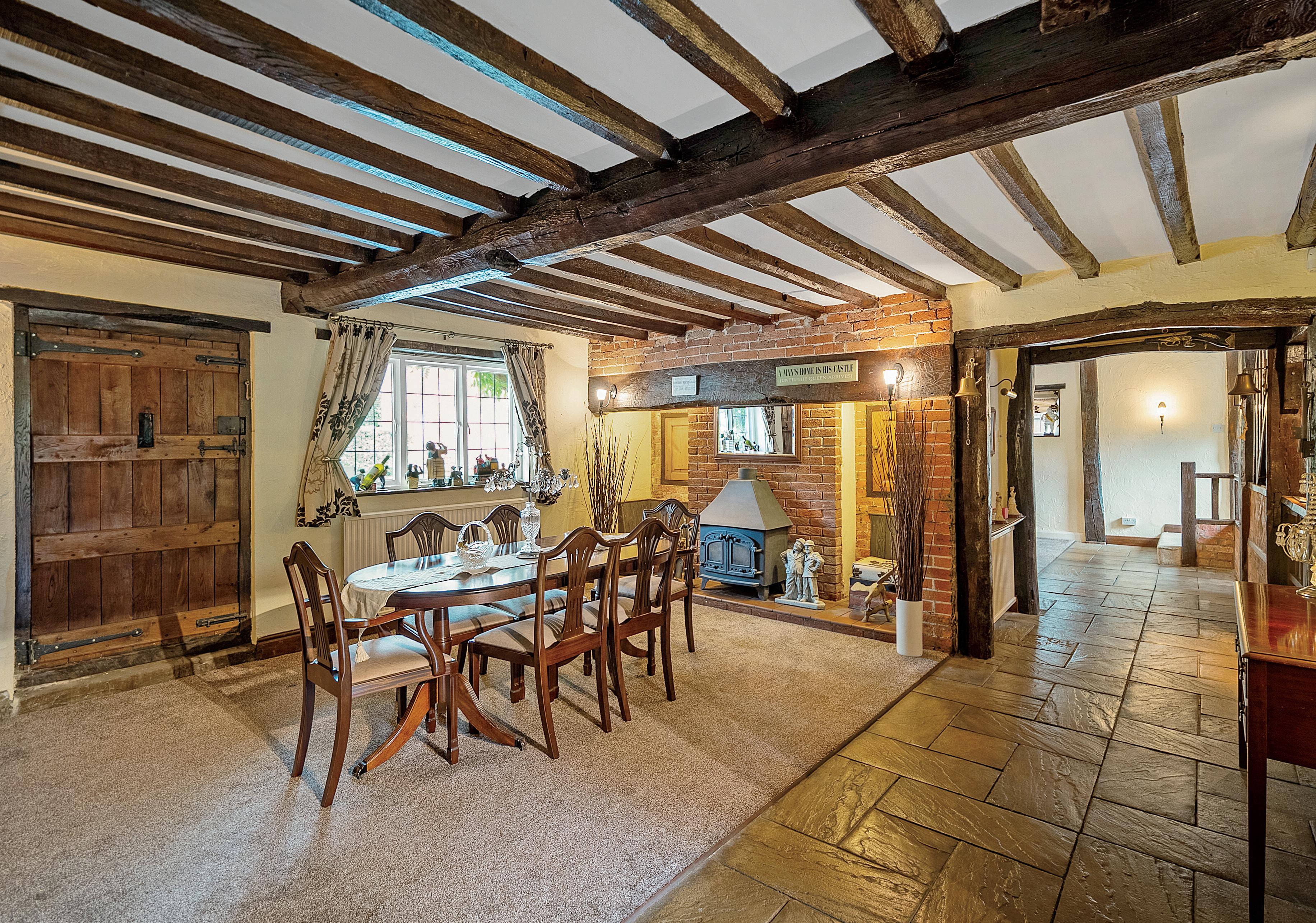 The open entrance hallway has beautiful wall and ceiling beams, with a further hallway to the right giving access to the WC and staircase leading up to the master bedroom suite. Doors lead into the sitting room and dining room. Every room has the most amazing wall and ceiling beams, originally ships beams, some dating back to the 16th century building. In the dining room you will find part of the pub bar still in situ, a real throw back to the hustle and bustle of the lively village pub of old. There is a second staircase that leads to the further three double bedrooms and family bathroom