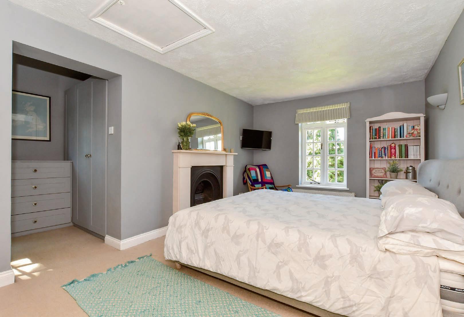 On the first floor there is a superb family bathroom that has a stand-alone slipper bath with claw feet, a separate shower, a modern vanity basin and an airing cupboard as well as three double bedrooms that all have charming blinds on all the windows and delightful views across the garden and the countryside beyond. They include one with large built in cupboards and wood flooring, another with a central beam and wood flooring while the attractive master bedroom has a charming fireplace, a dressing area, built in wardrobes and fitted bedroom furniture as well as an en suite shower room. While on the second floor there are two double bedrooms with superb views, vaulted ceilings and cross beams. This floor would make an excellent ‘hideaway’ for a teenager or adult children wanting a bit of independence as the larger room could be used as a sitting room or could be offices for anyone working from home who didn’t want to be disturbed by other activities in the home. This floor also incorporates two attics and loads of storage.