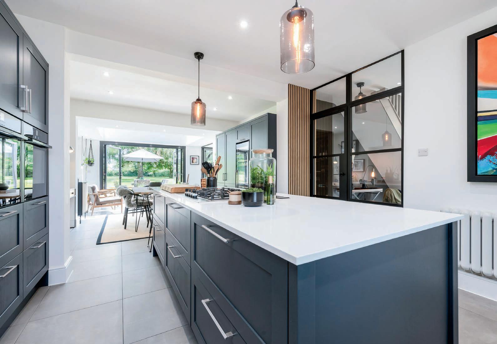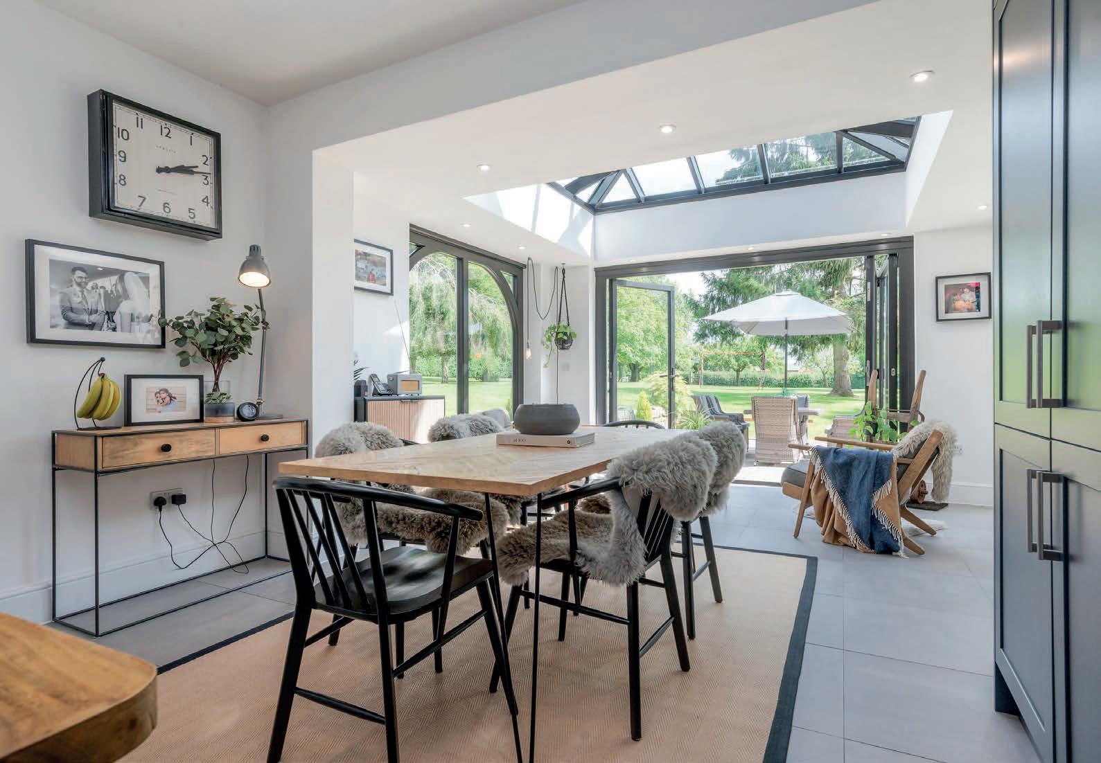 The grand entrance to this exceptional Property sets the tone with a stunning reception Hallway, featuring elegant, glazed doors and an attractive staircase leading to the first floor. A Crittall door with a glazed side screen seamlessly guides you into the heart of the home the breath-taking living Kitchen. From the Hallway, access the sophisticated Sitting Room, a dual-aspect space graced with exposed ceiling beams and a new striking feature fireplace with a wood-burning stove. The adjacent Study flows effortlessly into an Orangery, bathed in natural light from a lantern roof and bi-fold doors that open onto an expansive patio, further connected to the living Kitchen by double Crittall doors.
