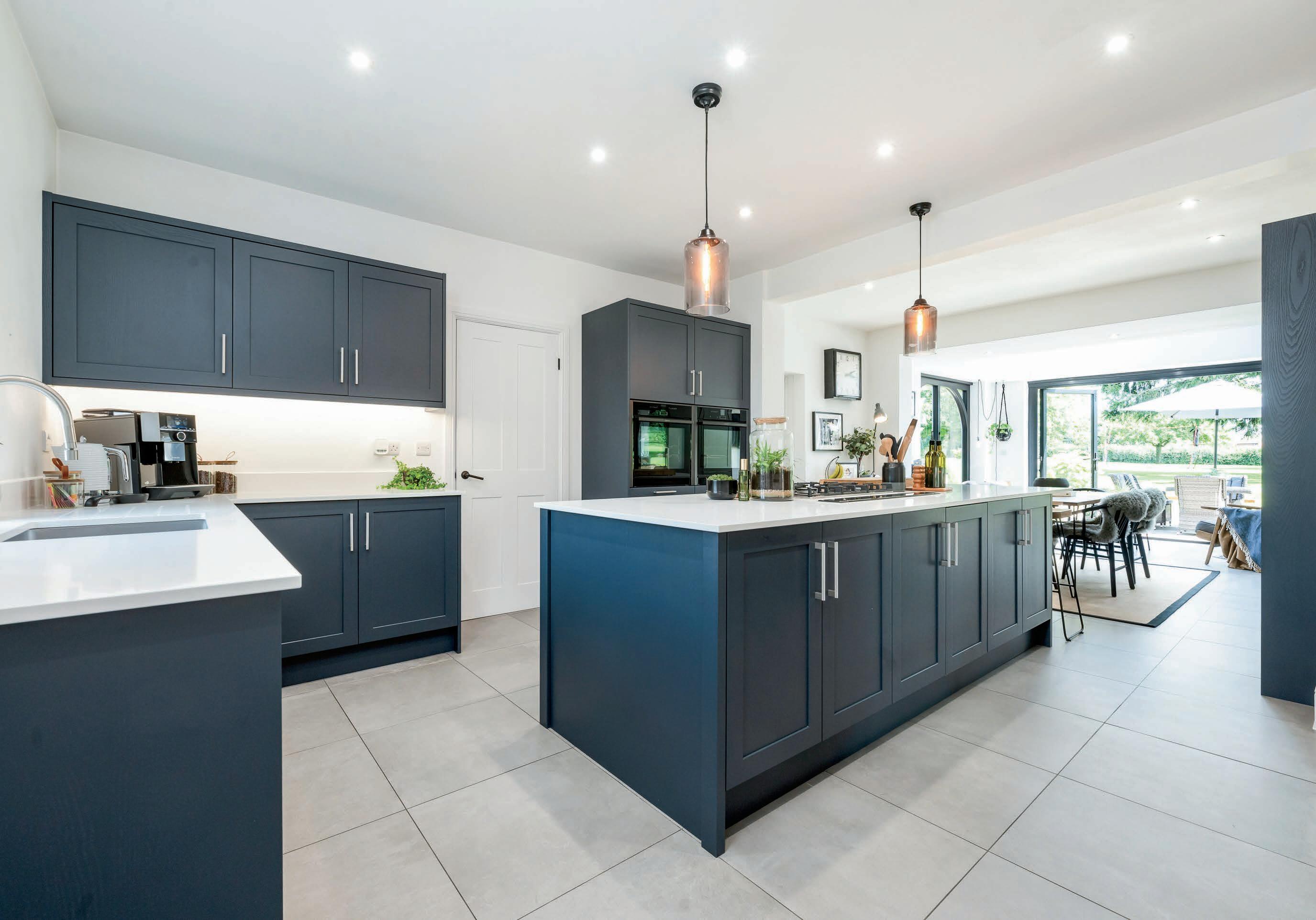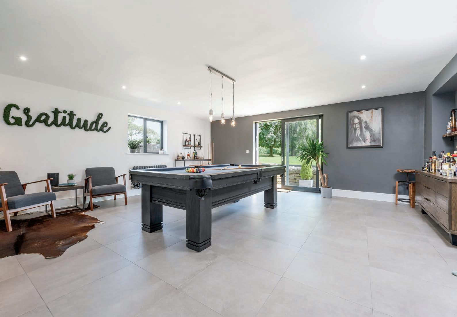 The living Kitchen, flooded with light from its own lantern roof and bi-fold doors, offers an exquisite blend of style and functionality. The solid wooden Kitchen features a large central island with Quartz surfaces taking centre stage, complete with a Neff six-ring gas hob and surface extraction unit. Further Neff appliances comprise of two fan-assisted slide-under ovens, integrated dishwasher, integrated larder-style fridge and (separate) freezer, a 2-zone wine cooler, and a stainless-steel sink. Practicality is paramount, with a rear entrance having Cloaks/Boot-Room storage and a well-appointed Utility Room featuring space for separate laundry appliances, a stainless-steel sink, extensive storage, and access to a guest WC. The premium Kitchen and Utility Room features 2 built-in larders. The home’s impeccable flow continues with the added extension, offering versatile ground-floor accommodation. A cosy Snug, perfect for modern family life, adjoins the living Kitchen and then leads to a spacious Family/Games Room. This room, with its patio door overlooking the Garden, connects to a second large patio, perfectly enhancing the Property’s seamless indoor-outdoor living experience.