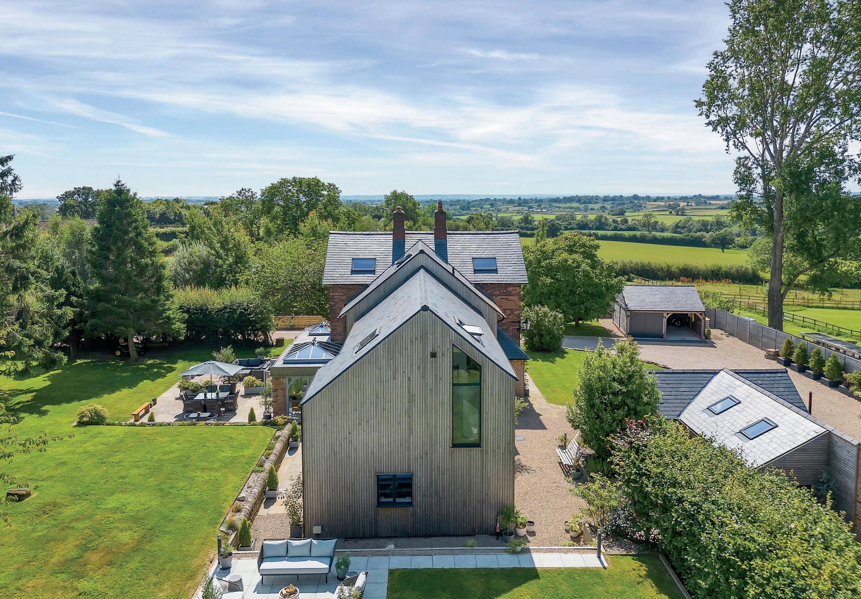 The Property is set within a beautifully landscaped 2-acre parkland Garden adorned with mature trees and small orchard. Seamless indoor-outdoor living is achieved through bi-fold doors and expansive patios, creating a perfect connection to the serene surroundings. A gated, sweeping driveway provides ample parking and leads to a detached oak-framed Garage and Carport.
