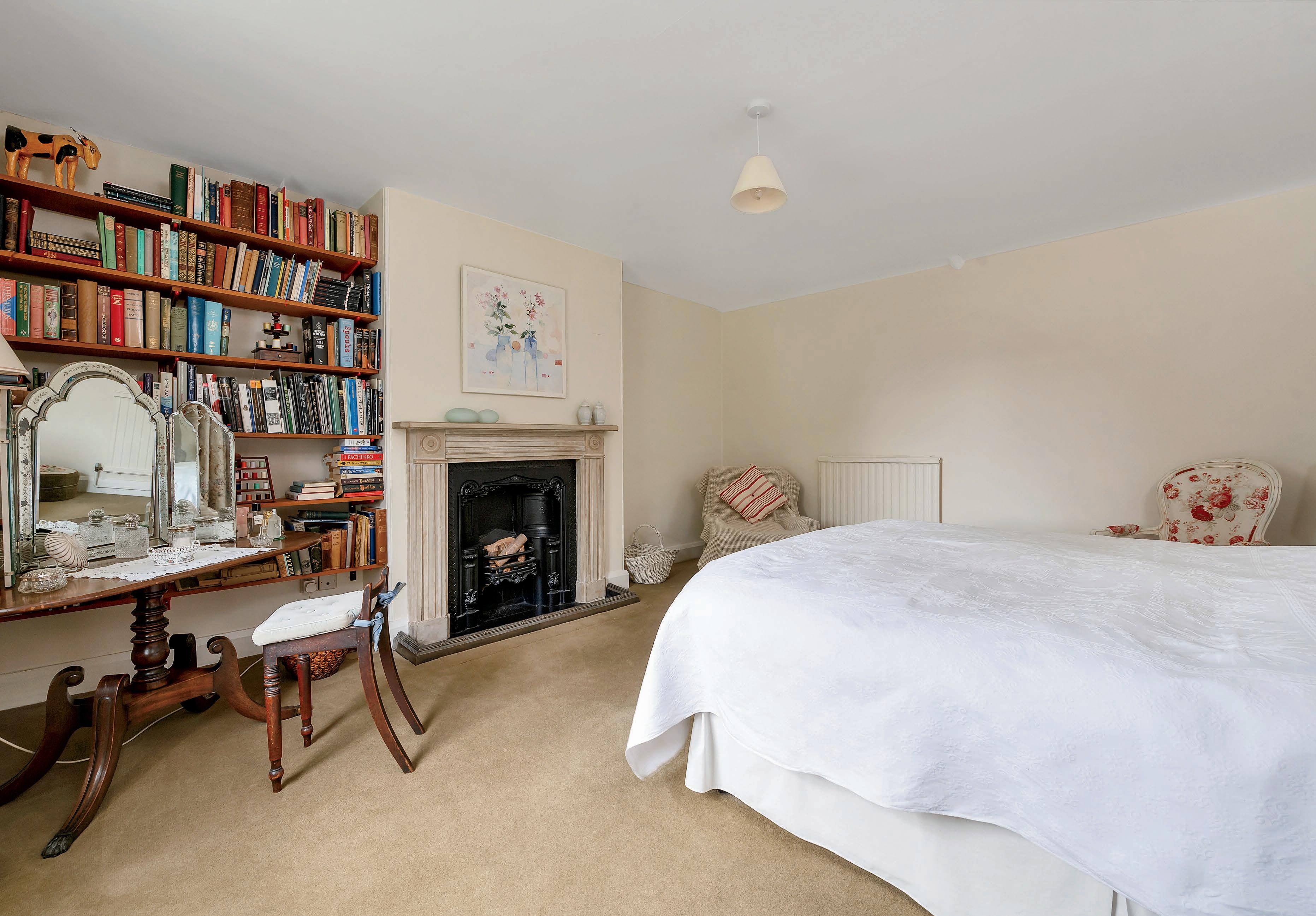 Ascending from the reception hallway via the first staircase, you are greeted by a semigalleried landing with a window overlooking the garden. This elegant landing provides access to the principal bedroom, two additional double bedrooms, and a bathroom. The principal bedroom boasts a well-appointed en-suite bathroom and an interconnecting door to the adjacent bedroom, a charming nod to the home’s historical function. This door offers great versatility for families, however it could be removed having potential to reconfigure these rooms with modern privacy. The second bedroom features an attractive stone fireplace, adding to its charm.