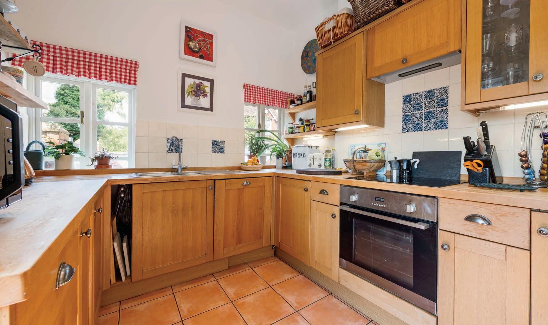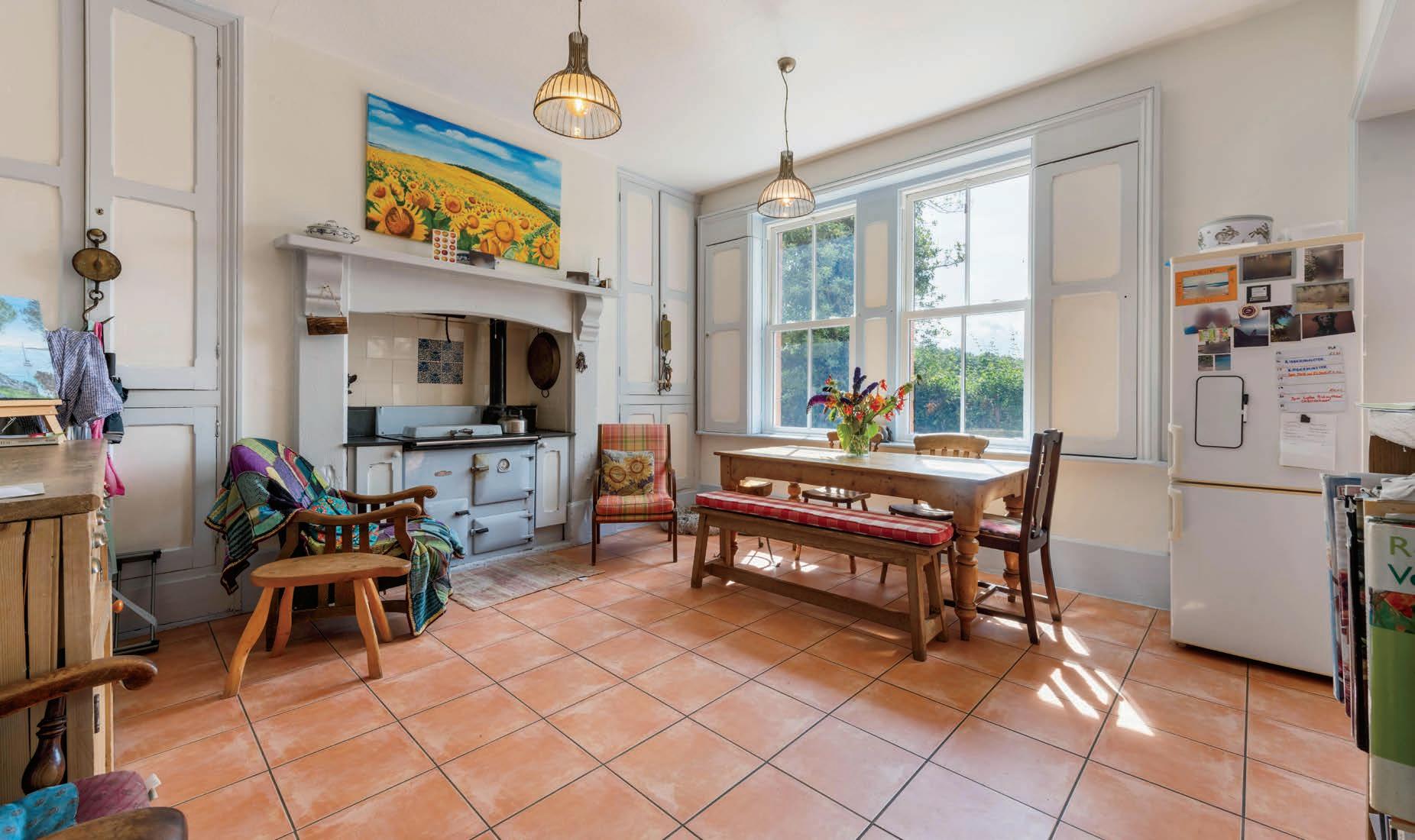 Ground Floor and Basement: When entering The Hoo, you are greeted by a large open plan farmhouse kitchen and dining room with oiled-fired Rayburn Royal boiler. There is a utility/boot room adjacent with a downstairs WC, and a rear door from the kitchen takes you to an outside courtyard, perfect for outside dining.