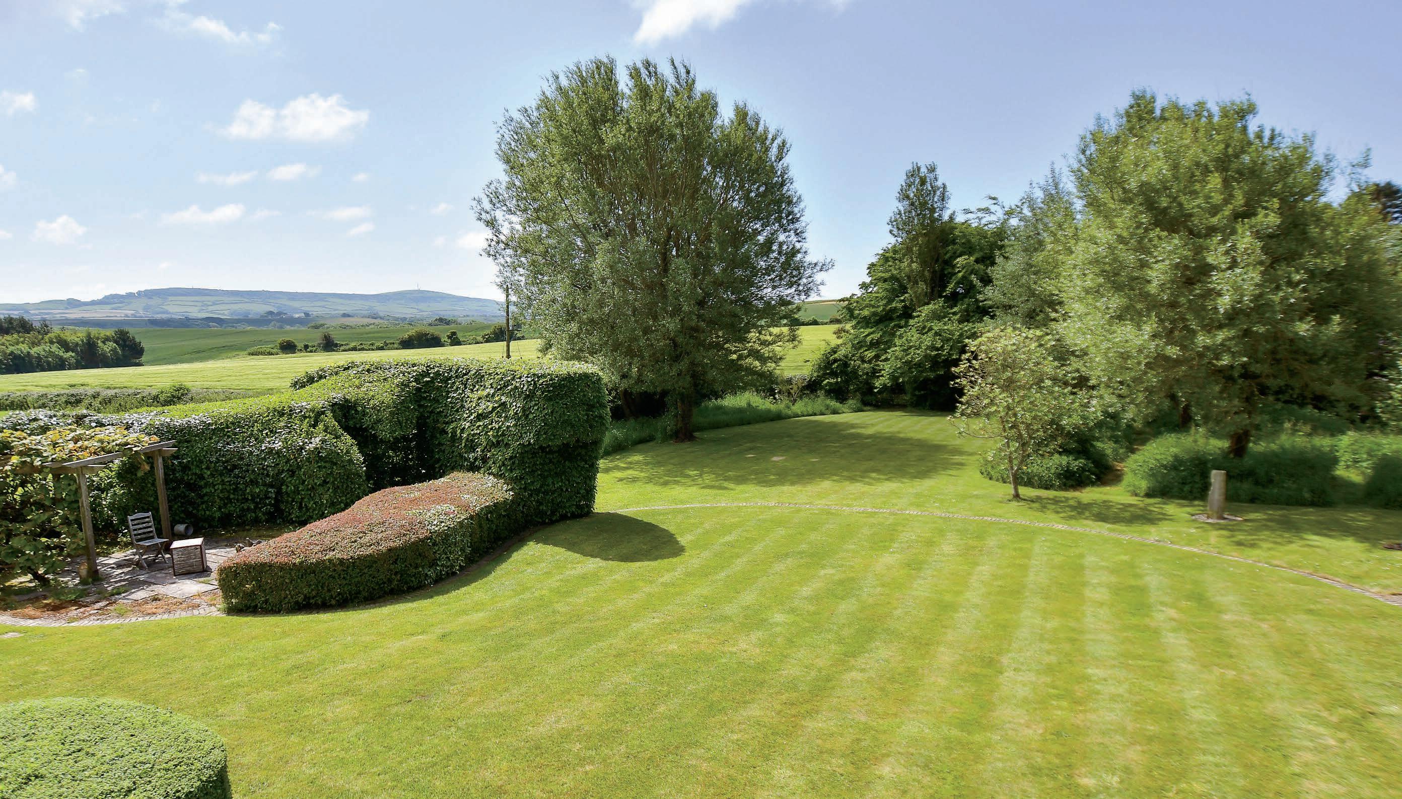 The gardens range from the vast, open lawn at the front that’s interspersed with beautiful swathes of flowerbeds, to the south facing paved terrace with timber pergola overhead, to a treelined wilderness on the outskirts; they are all simply stunning. Of course, beyond the garden are absolutely breathtaking views of rolling fields, farmland and countryside.