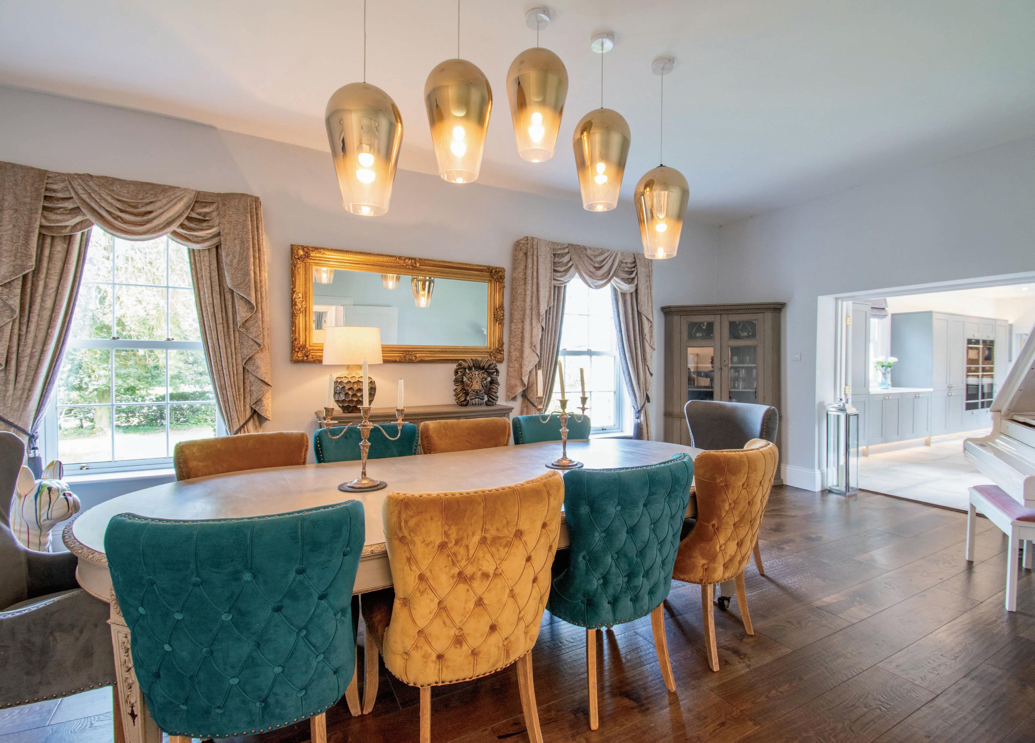 A canopied solid wood entrance door with glazed top light opens into a spacious reception hall providing the first hint of the tasteful fit and finish to this unique property. The flooring is stone flagged providing contrast and practicality to the elegant period features, which include a spindled return staircase to the first floor. Two reception rooms flank the front of the hall the principal being an expansive dual aspect living room which is arranged in two sides defined via a broad arch, each side has a period fireplace, one with an open grate the second with a wood burning stove style fire.