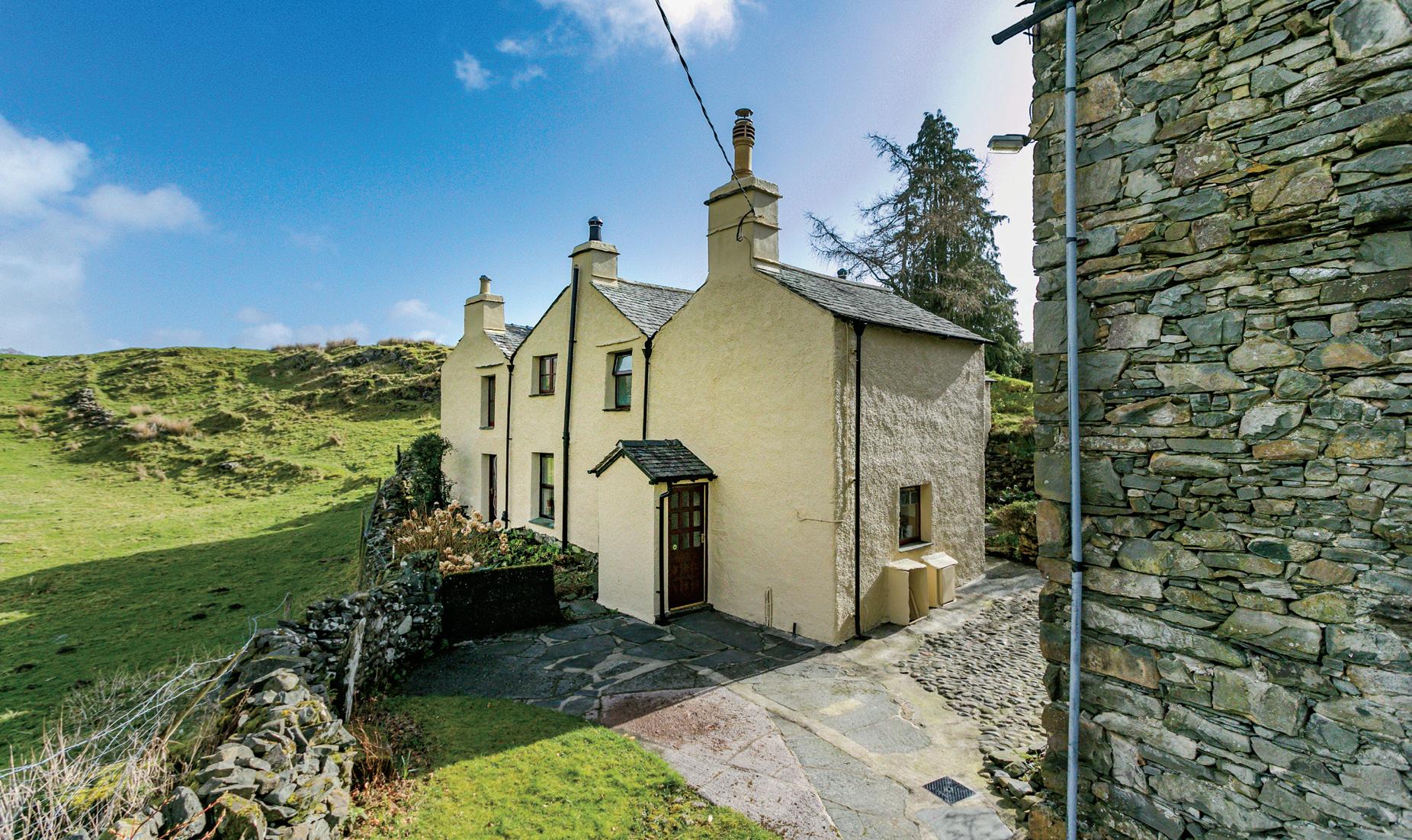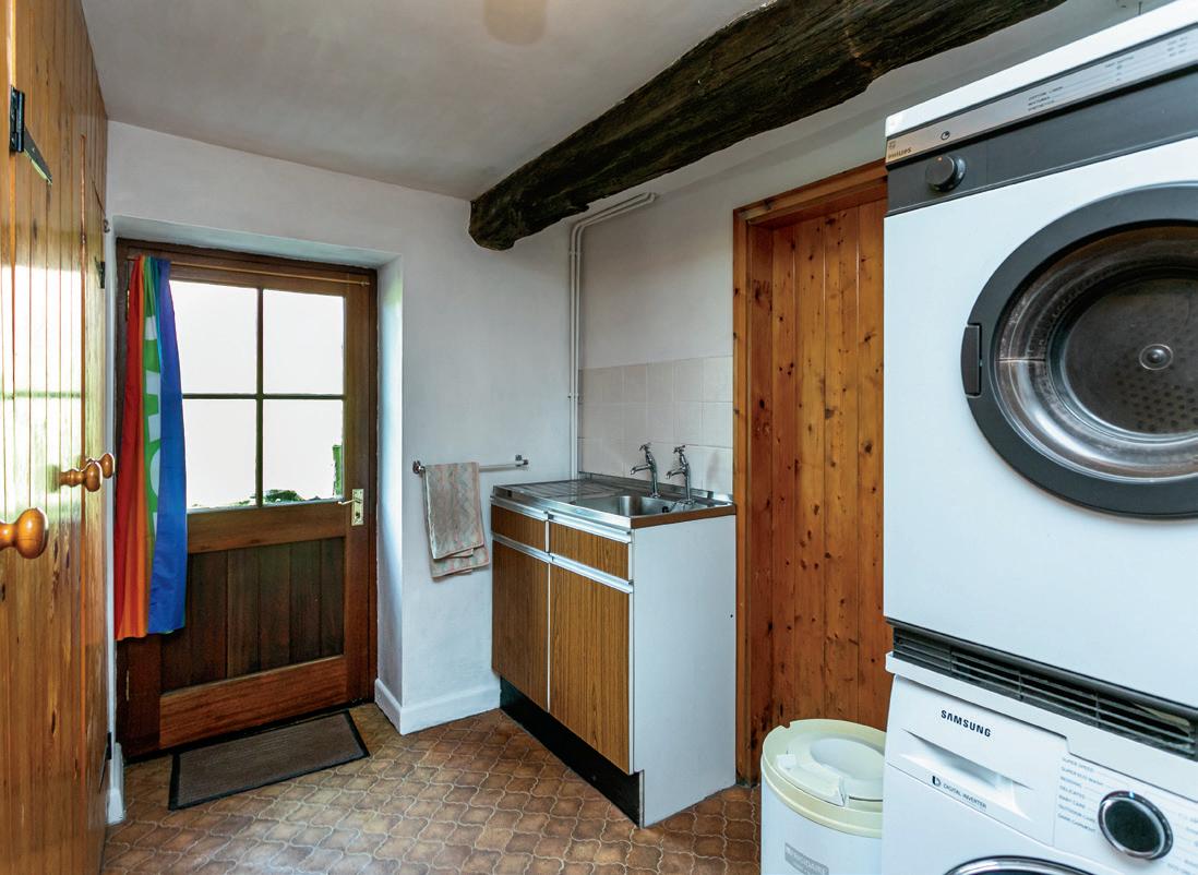 The detached stone and slate Lakeland bank barn offers clear space on the first floor, the traditional barn doors are still in place and there are steps rising from the ground floor where space occupied by former shippons for cattle have been adapted for use as a workshop and office. There’s power and light to the barn.