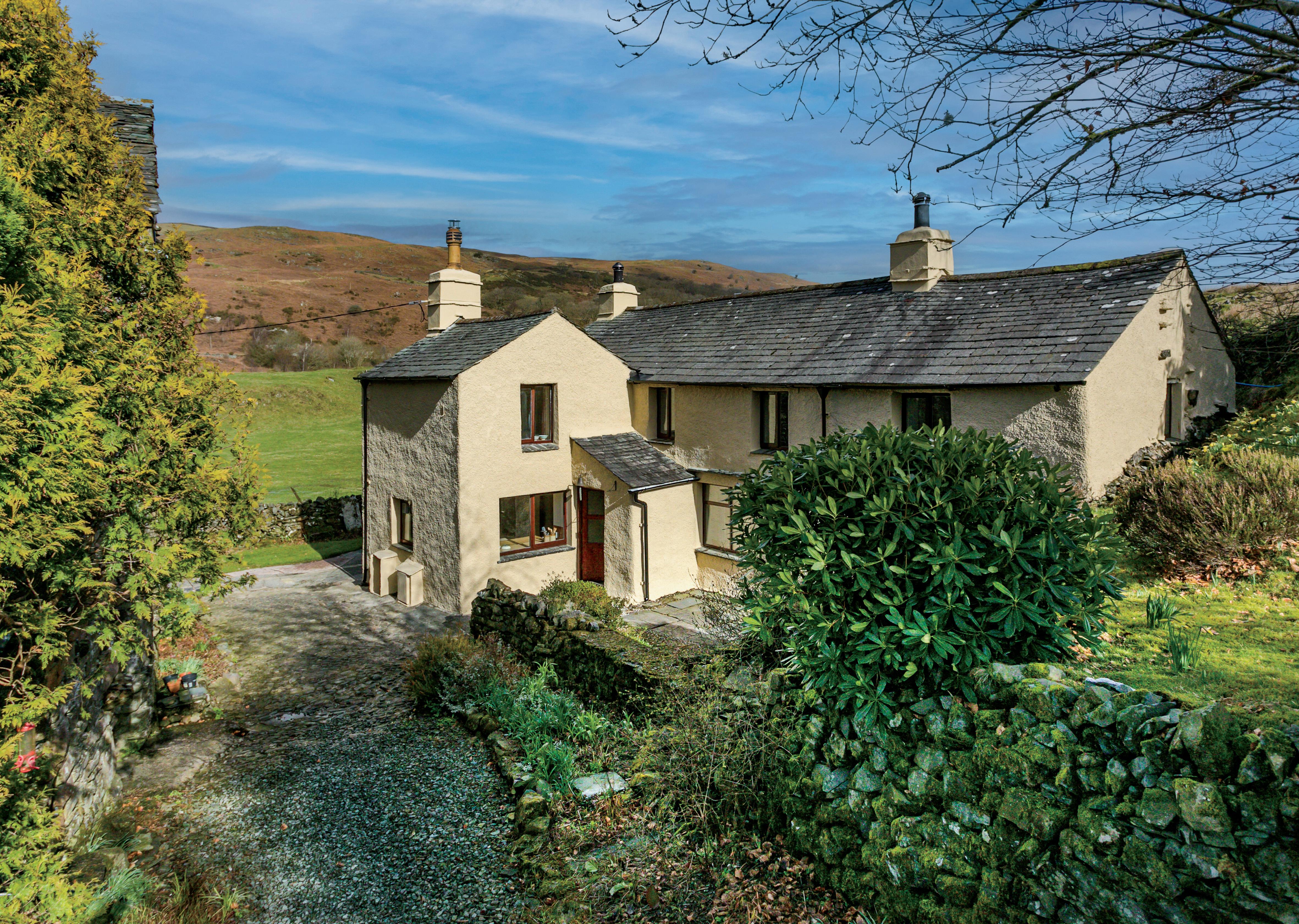 Unspoilt and offering immense potential this detached early 1600s farmhouse and adjacent detached barn is set in delightfully informal gardens and occupies its own little world – a peaceful, private and totally secluded haven in an otherwise busy world. If you are looking to escape the madding crowd then Hazel Hall offers a rare opportunity, a much loved family home since 1980 the time has now come for the current owners to reluctantly downsize and move closer to local amenities. Here you have the chance to not only embrace Lake District life where the noisiest thing you’ll probably encounter is the stream and waterfall which crosses the garden but also put your own stamp on the house and barn which has great scope for development of some description. Hazel Hall has characterful and quaint living accommodation (it’s not a Listed Building) with exposed beams, timbers and floorboards (some of which are delightfully uneven), a lovely old staircase and pine plank doors. It currently offers two reception rooms, a kitchen and utility room, wet room and separate loo all on the ground floor and on the first, five bedrooms (three doubles and two singles) and a house bathroom. There’s oil central heating and double glazing, most of which is wooden framed.