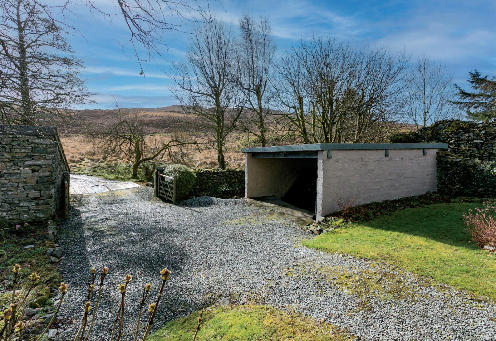 The garage (probably best described as a ‘generous single’ so there’s extra room for storage over and above a car) is situated near the gates and is block built with a mono pitch sheeted roof. On the opposite side of the gates is a further detached stone and slate store and within the grounds is a small dilapidated barn, the roof is long since gone but the majority of the walls are still standing.