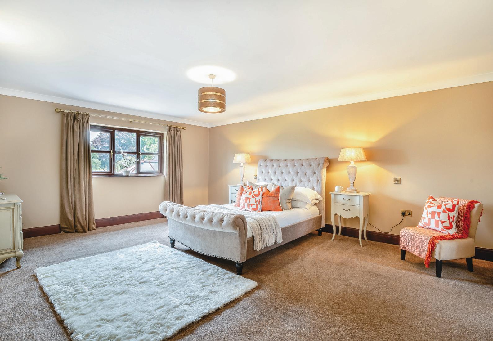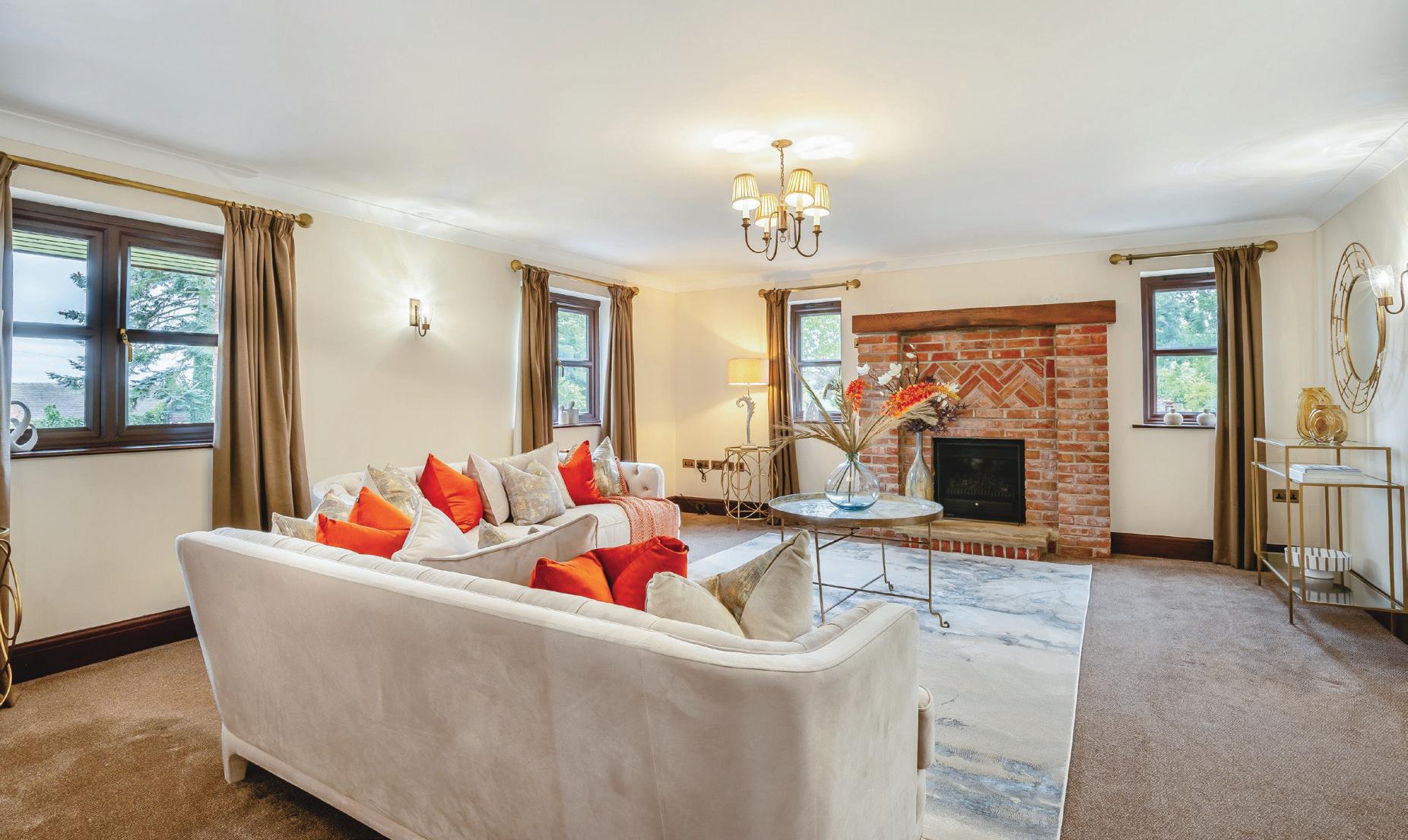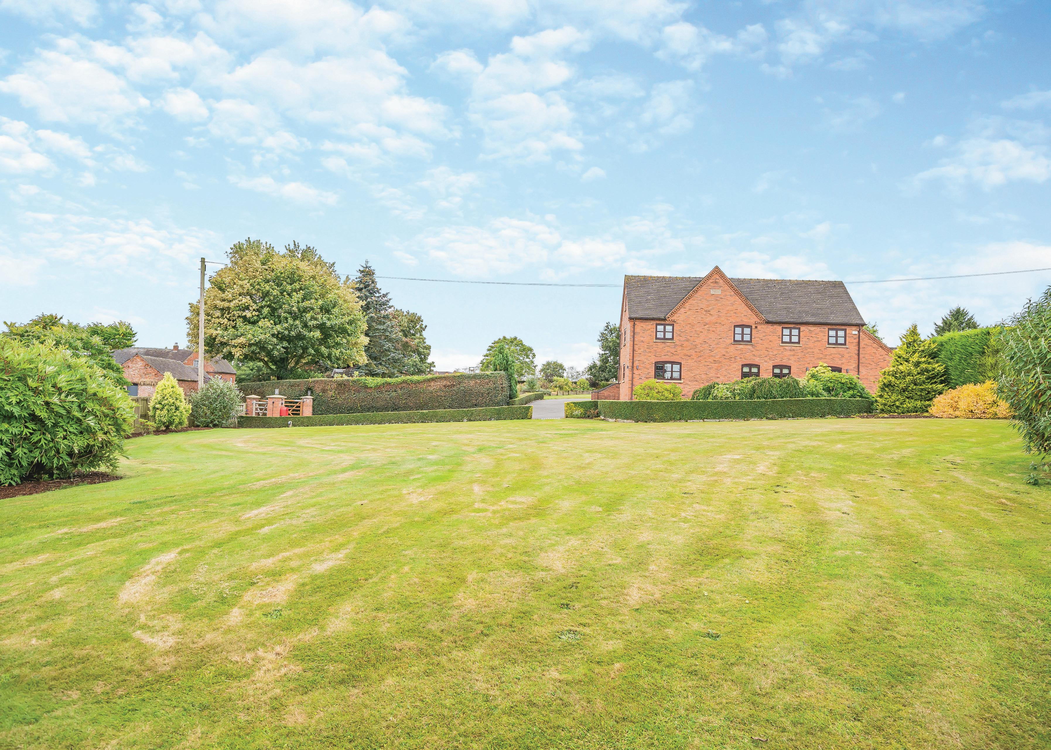 Outside, the generous gardens serve as an extension of the indoor living and social spaces. “Over the years the garden has been re-la ndscaped to include 6 patio areas around the property,” say the owners. “This allows for large family gatherings, whilst also accommodating smaller, different groups of people in p rivacy. The garden is predominantly south facing and has multiple spaces for playing, peaceful relaxation areas and growing flowers, fruit and vegetables. There is even a small orchar d and a dedicated wildlife area with owl boxes. These areas are adjacent to the main gardens and there is a previously used “cricket pavilion” (with its own services) that could be utilised for equestri an purposes, as a general gardening store or as changing rooms for a swimming pool and tennis court (which was a plan for us!). The field is the previous home of Bramshall Cricket Club and many locals are keen to talk of sunny Sundays and evenings spent by the wickets! We have hosted many garden parties over the years, as the space will easily allow for marquees, outdoor games and large gatherings of over 100 people. Children’s birthday parties here have been wonderful, from circus themed celebrations to afternoon teas, to name but a couple. The outdoor space was perfect for us t o lay on “thank you” events for the employees of our company, too - they even camped over in the paddock!”