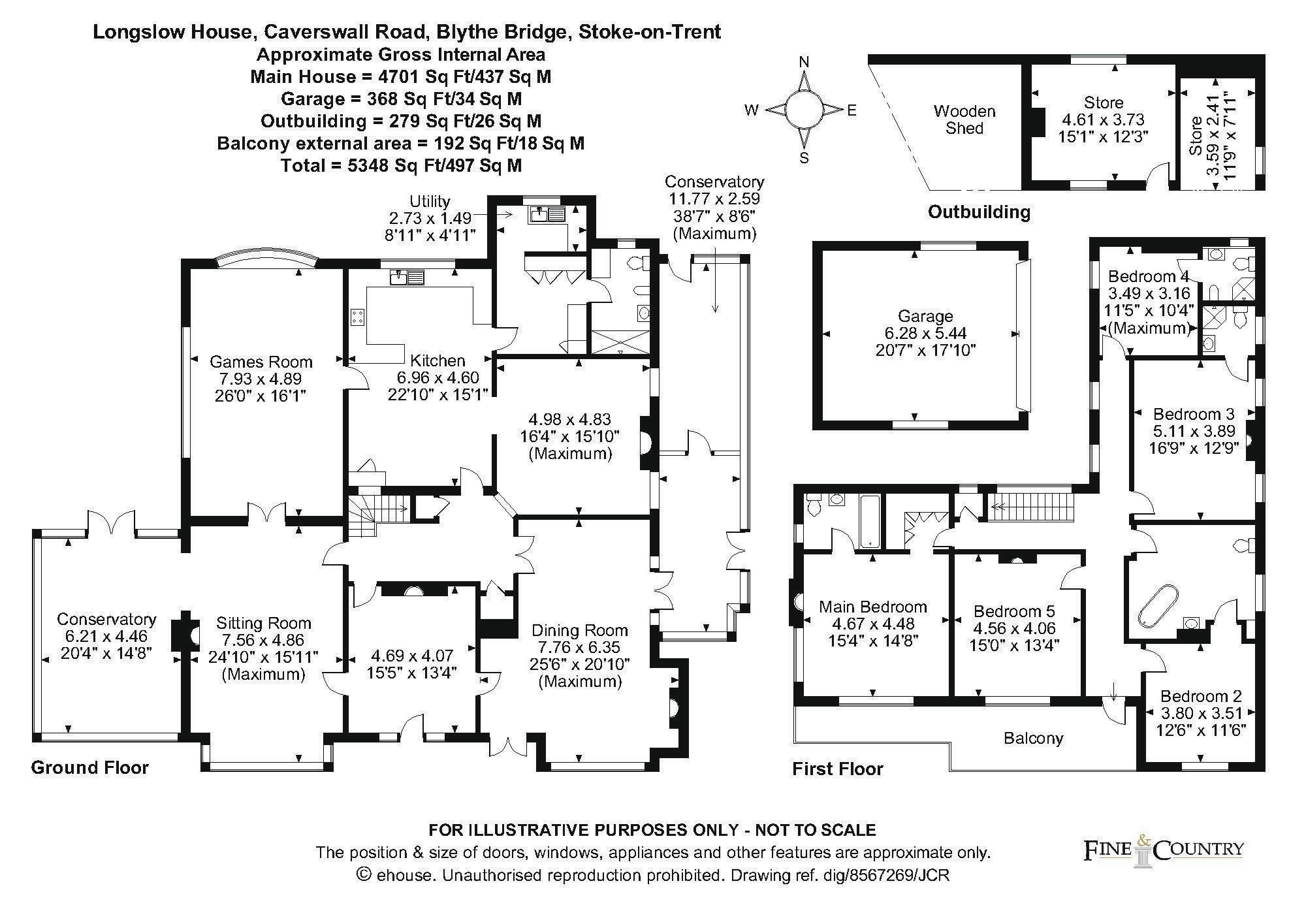 On entering Longslow House and its reception hall you immediately appreciate the spaciousness the natural light and airy ambiance of this room which continues throughout much of this character driven home. The high ceilings maintain this feeling of spaciousness complimented with the welcoming fireplace and a perfect place to meet and greet guests. This reception hall leads through to the dining room with its neutral colours and double aspect windows allowing natural light to flood into this well-proportioned room as well as enjoying the views over the gardens to the front. French doors lead to the first of 2 conservatory’s which acts also as a garden room or green house depending on your preference. The sitting room which sits off the reception hall is very much in keeping with the style and décor already presented throughout the house with the central focal point being the fireplace. A lovely box window again shows off the views to the front garden and making this room naturally lite and with the arched double doors through to the games room creating a very much open plan theme. This double aspect room also is spacious throughout and a perfect place for the children to play while being able to keep an eye on them. The main conservatory also sits off the sitting room and with its vaulted ceiling and windows to all sides a perfect place to relax in your surroundings and enjoy the garden views. The kitchen is a very sociable area of this property with plenty of opportunity to congregate around the kitchen table or breakfast bar or maybe sprawl in the very relaxing breakfast area with its pleasant surroundings complimented by the fireplace. There is a separate and spacious utility room off the kitchen and downstairs cloakroom to complete the downstairs accommodation.