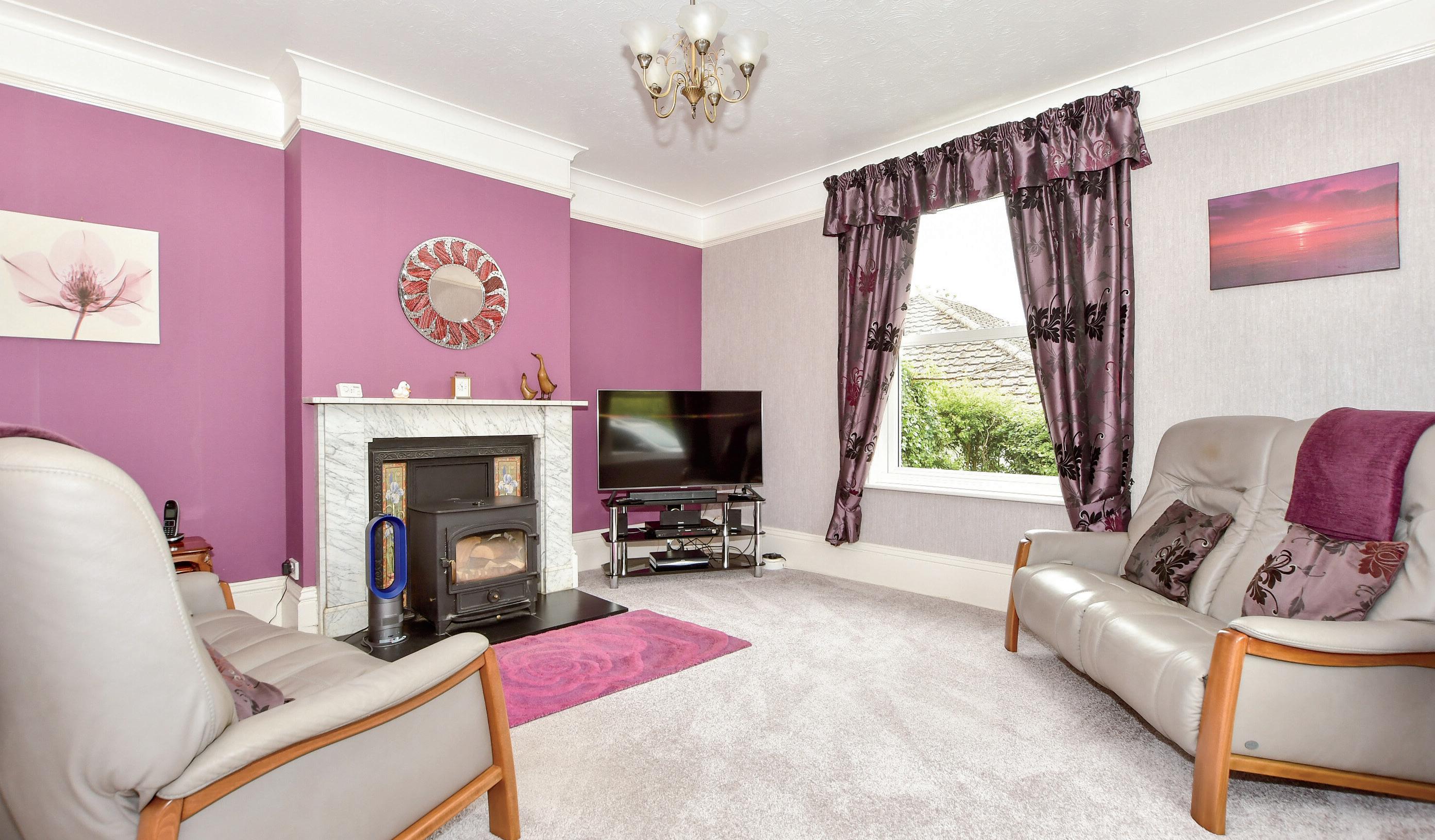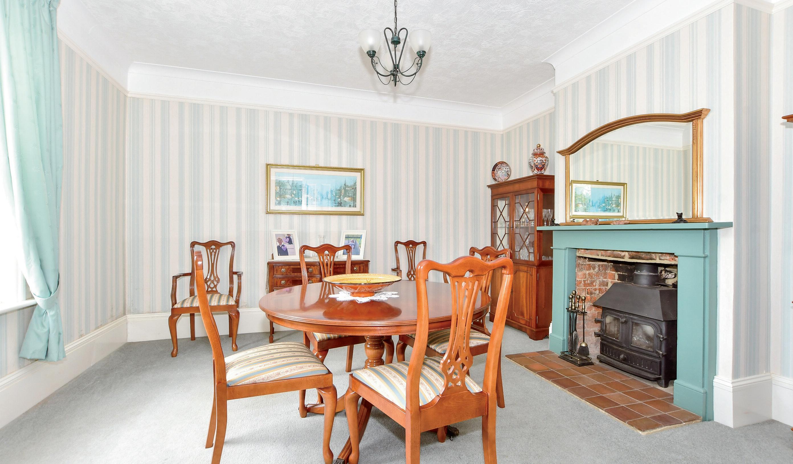 The conservatory is larger than average and is the ideal place to relax and enjoy the picturesque views across the garden and rolling countryside beyond. At the front of the house is the sitting room, displaying attractive cornicing and a beautiful, original fireplace with the addition of a wood burning stove to complete the look. In the dining room is another feature fireplace with an exposed brick chimney giving it a cosy, rustic feel, and of course, there’s ample space for dining here too. Further rooms on the ground floor include an enclosed utility room and a W.C.