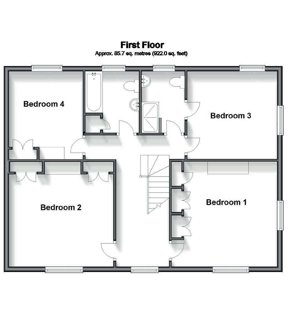 Up the attractive staircase to a galleried landing, there’s four double bedrooms and two bathrooms. The two bedrooms at the front are the largest and have the advantage of built in wardrobes. Bedroom three enjoys a contemporary ensuite shower room, that’s been tastefully finished to a high standard, as well as stunning views over the surrounding countryside, which it shares with bedroom four. The family bathroom is a good size and has benefitted from recent updating also.