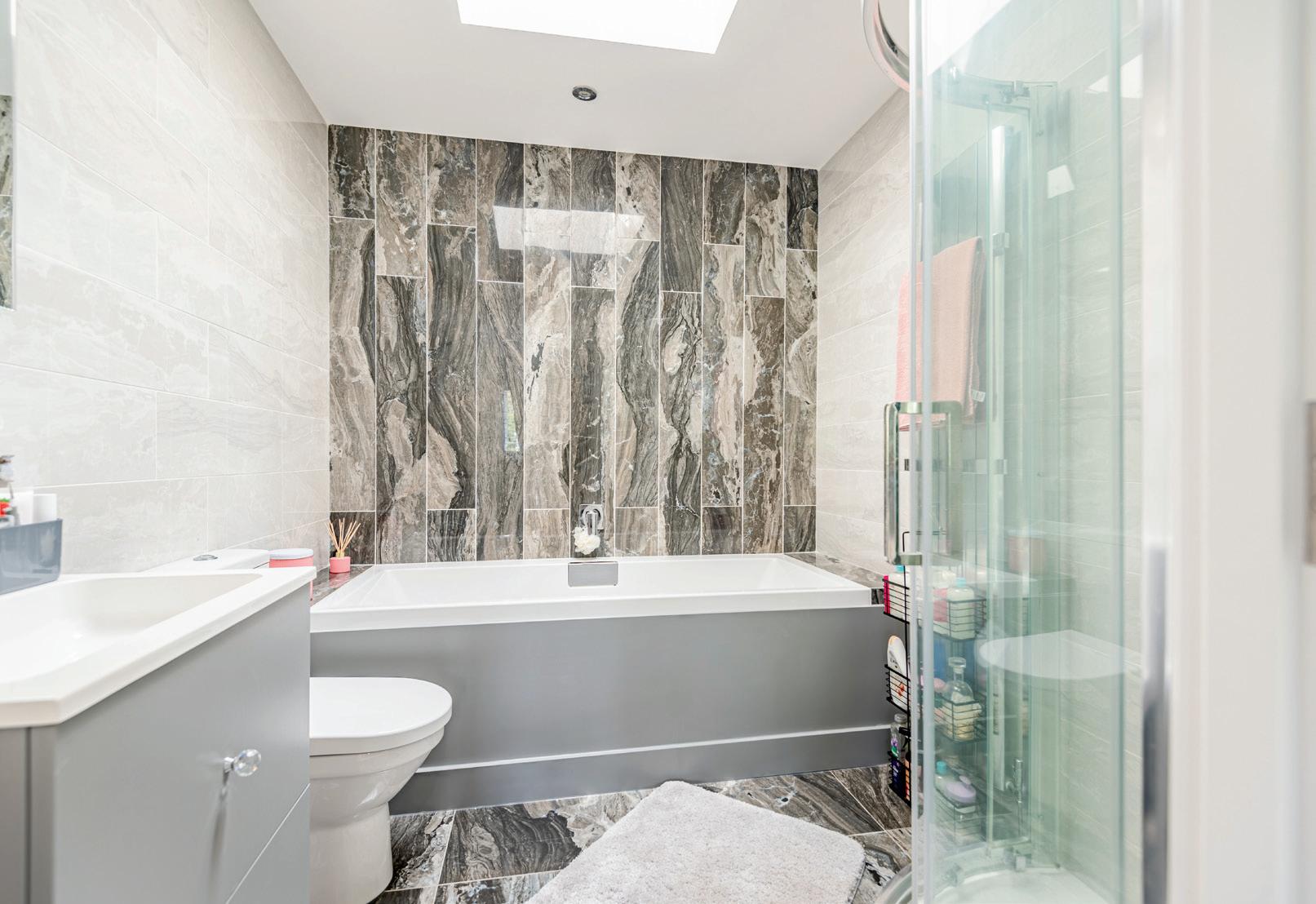 For functionality and practically purposes, the downstairs guest cloakroom is tucked discreetly away and is accessed via the laundry room, which is fitted with units and worktop to match the kitchen.