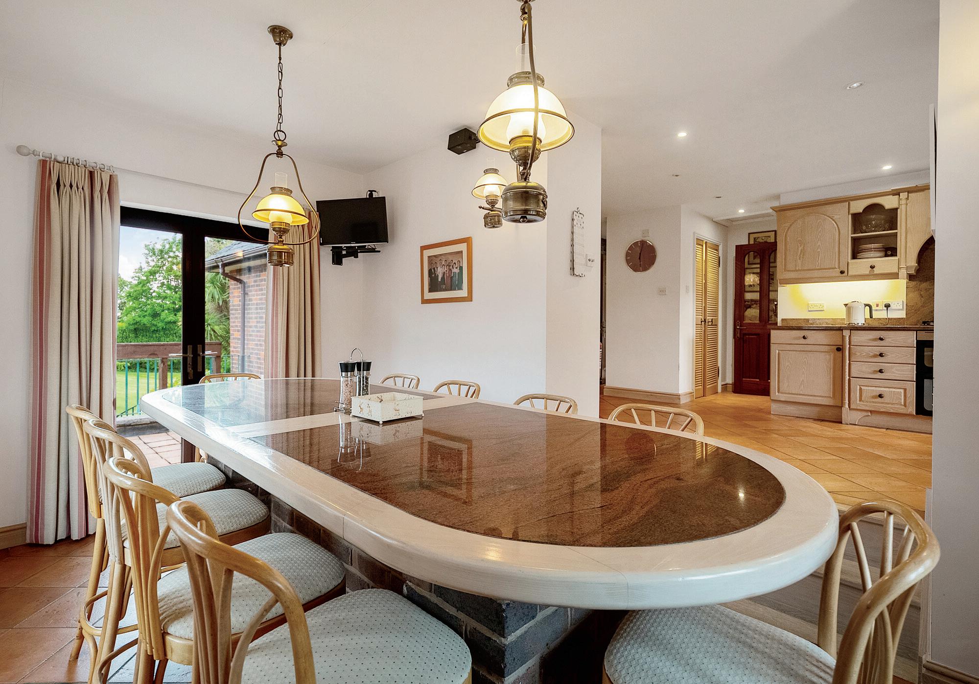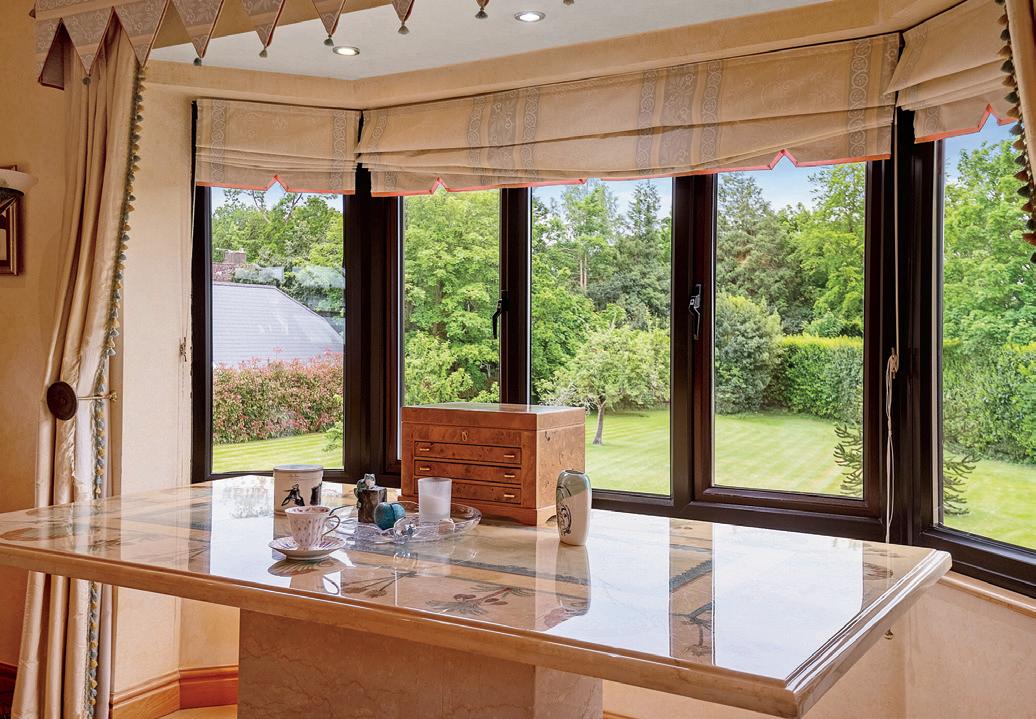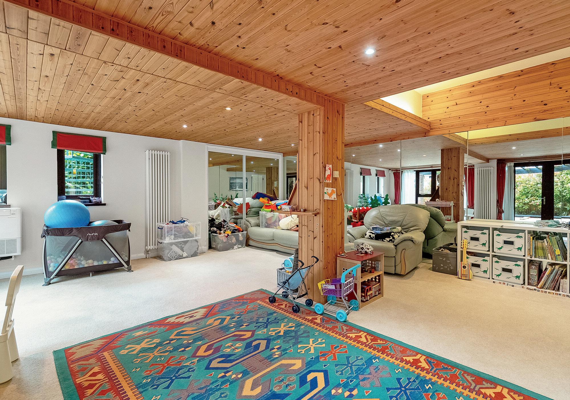 This is the ideal home for everyday family life and entertaining alike. “This has been a great home for parties,” says the owner. “We have hosted everything from 50th and 60th birthdays to postwedding celebrations and christenings here, with marquees on the front lawn. The hall with its double height windows is an excellent space to welcome guests with a glass of bubbly or an aperitif. We had a diving-depth indoor pool built almost as soon as we finished the house – the pool and the space around it have of course added to the fun of all the parties! All of my children love to swim and play around the pool, plus my many grandchildren have learned to swim here. The house sits towards the centre of the plot, so there was plenty of space for my 5 sons and my daughter to play rugby and other games.”
