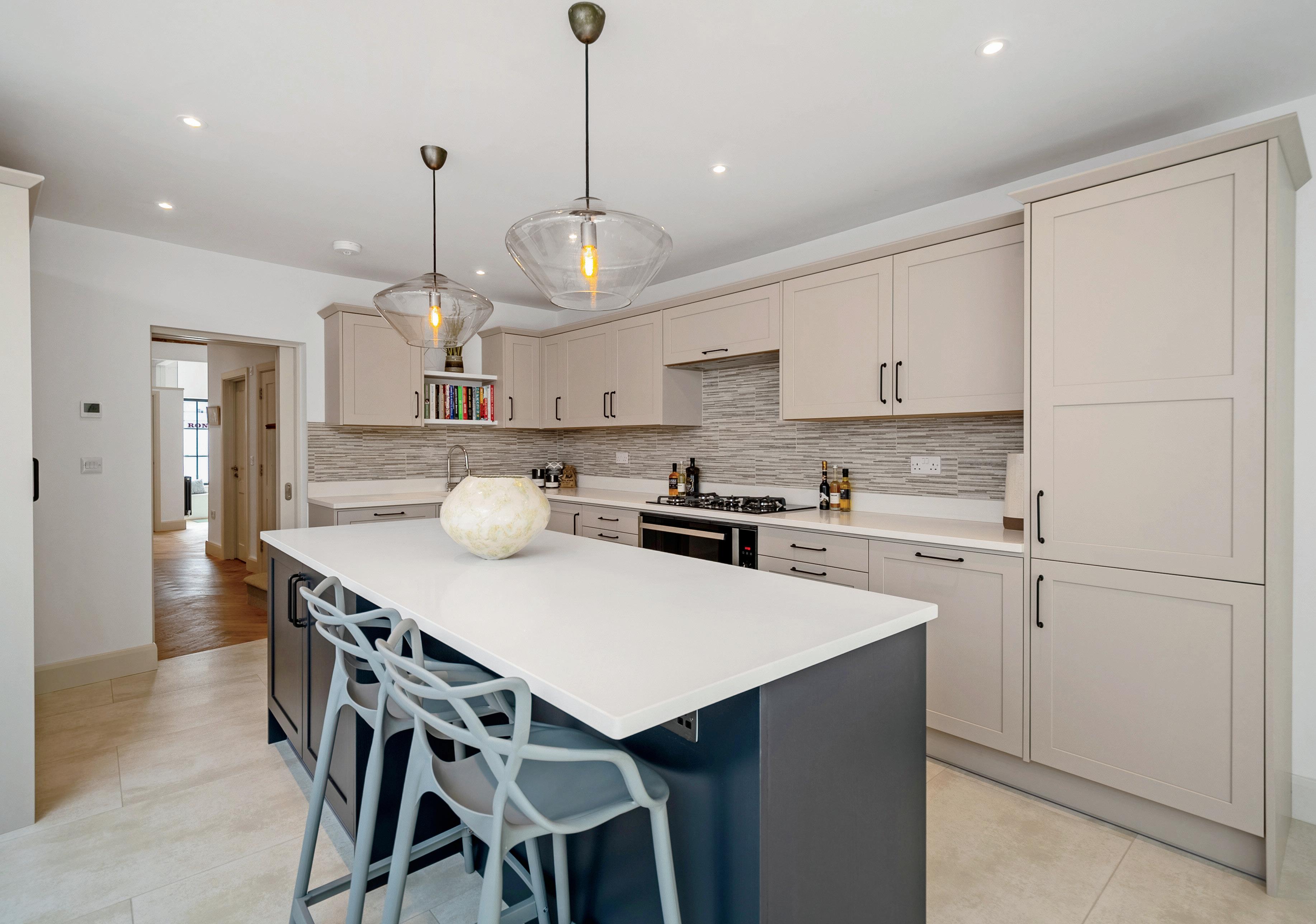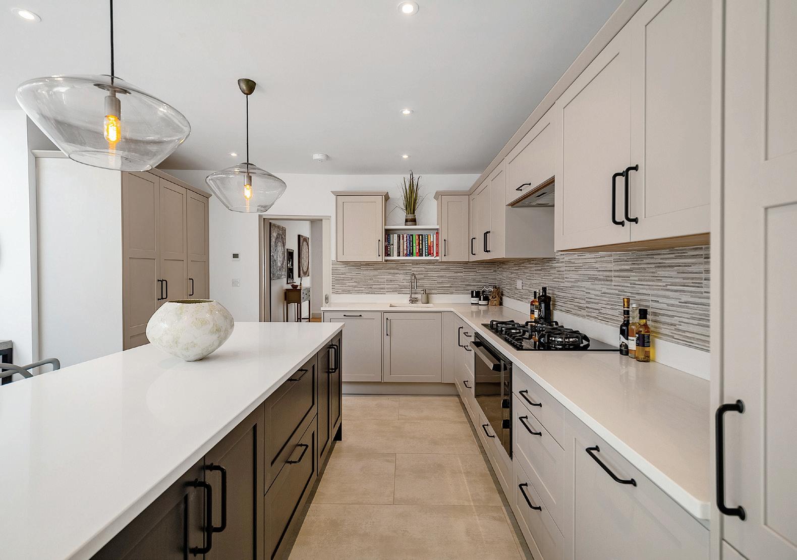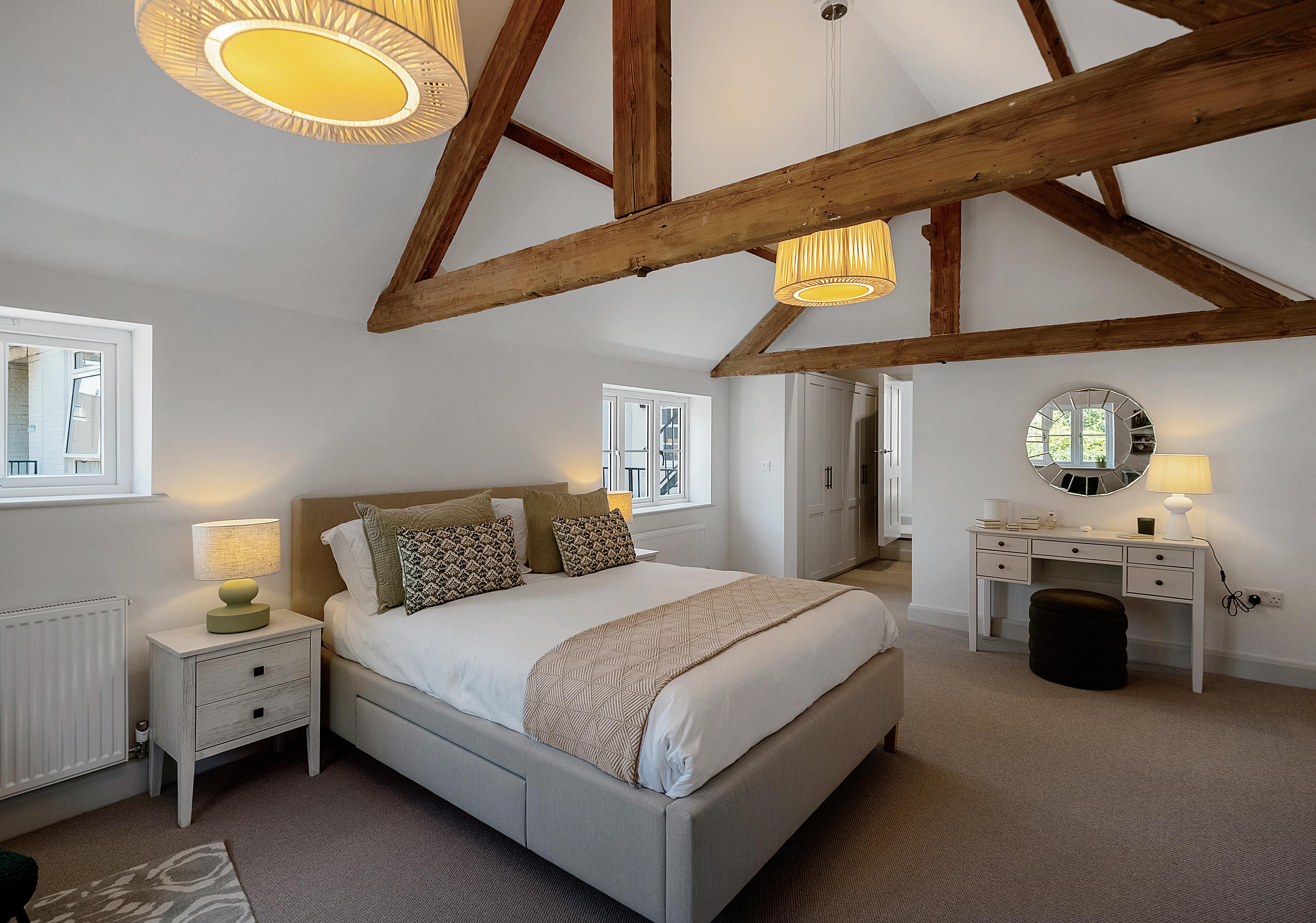 The first floor boasts two double bedrooms, both of which have feature lighting and fitted wardrobes. Each room has its own private threepiece en-suite. There is additional storage space above the principal bathroom.