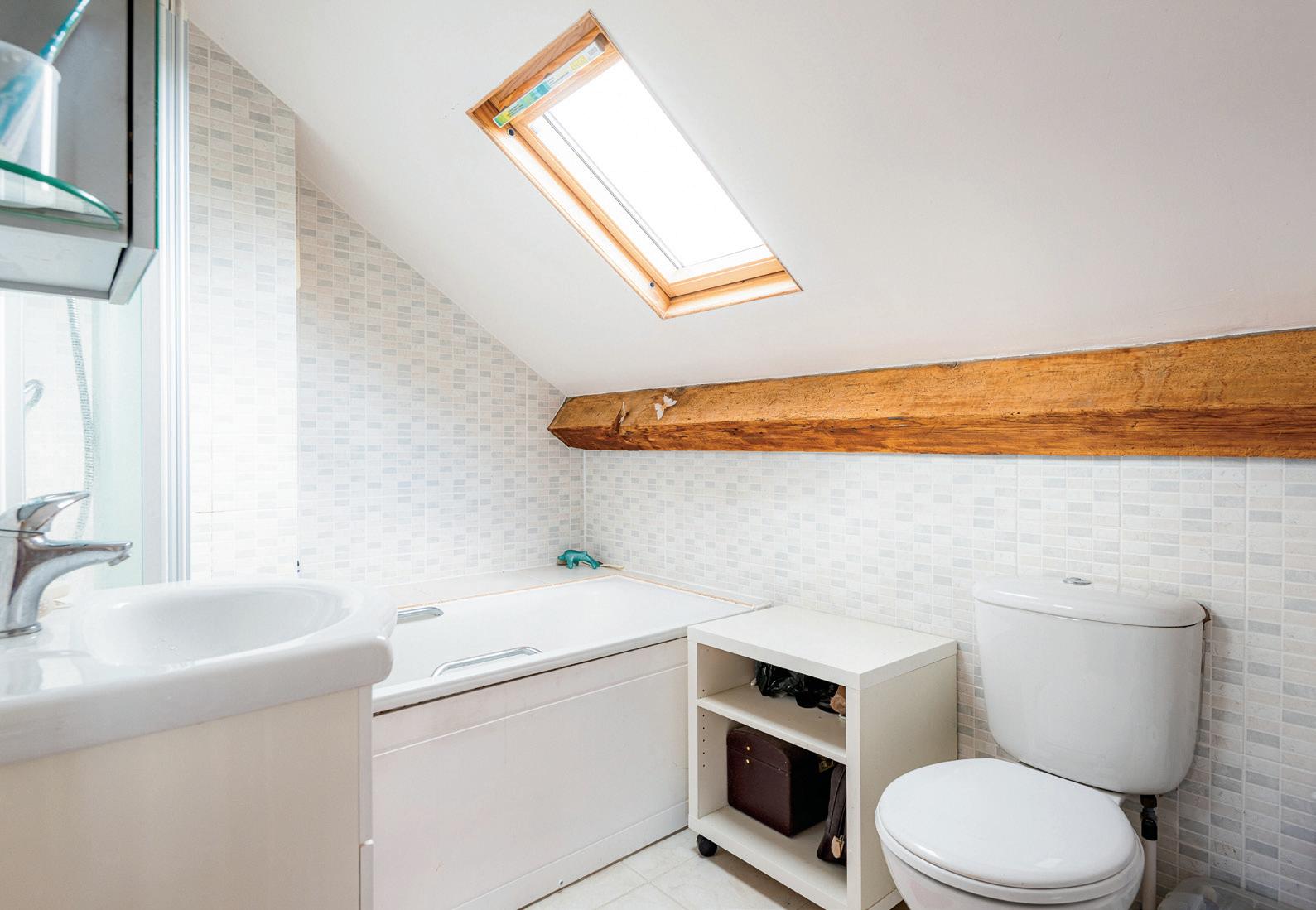 Bathroom: WC, wash basin, shower cubical with wall mounted power shower, bath, heated towel rail, tiled floor, terrific countryside views.