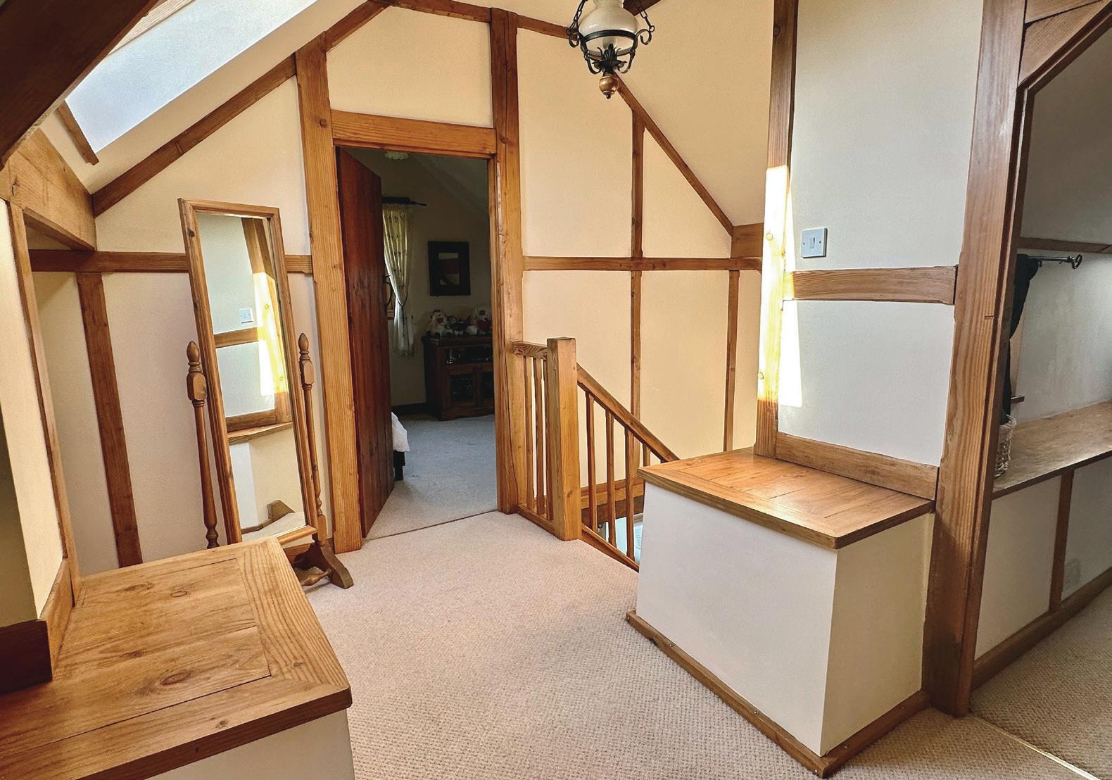 Landing: Exposed timbers, loft access, built in cupboard, radiator.