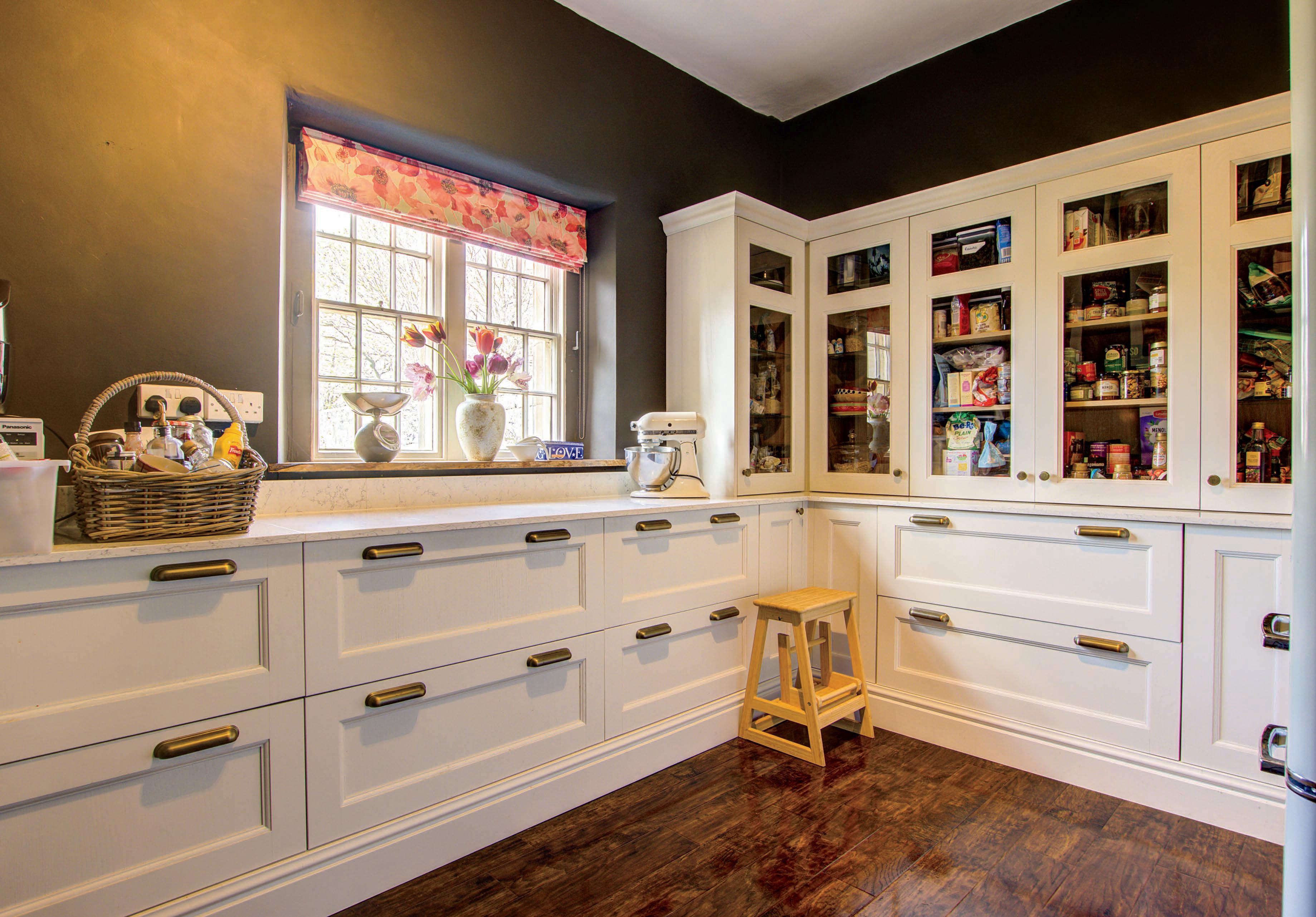 The dining/garden room invites gatherings with its rustic inglenook fireplace, complete with a Panadaro wood-fired stove, fitted bookshelves and French doors leading to the garden; the perfect space to entertain. The adjacent kitchen/breakfast room, adorned with bespoke cabinetry, features a twin oven gas-fired AGA and premium integrated appliances, including an electric oven, fridge and dishwasher. The views are picture-perfect from the kitchen window, framing the spectacular front garden and a beautiful Japanese Acer tree.
