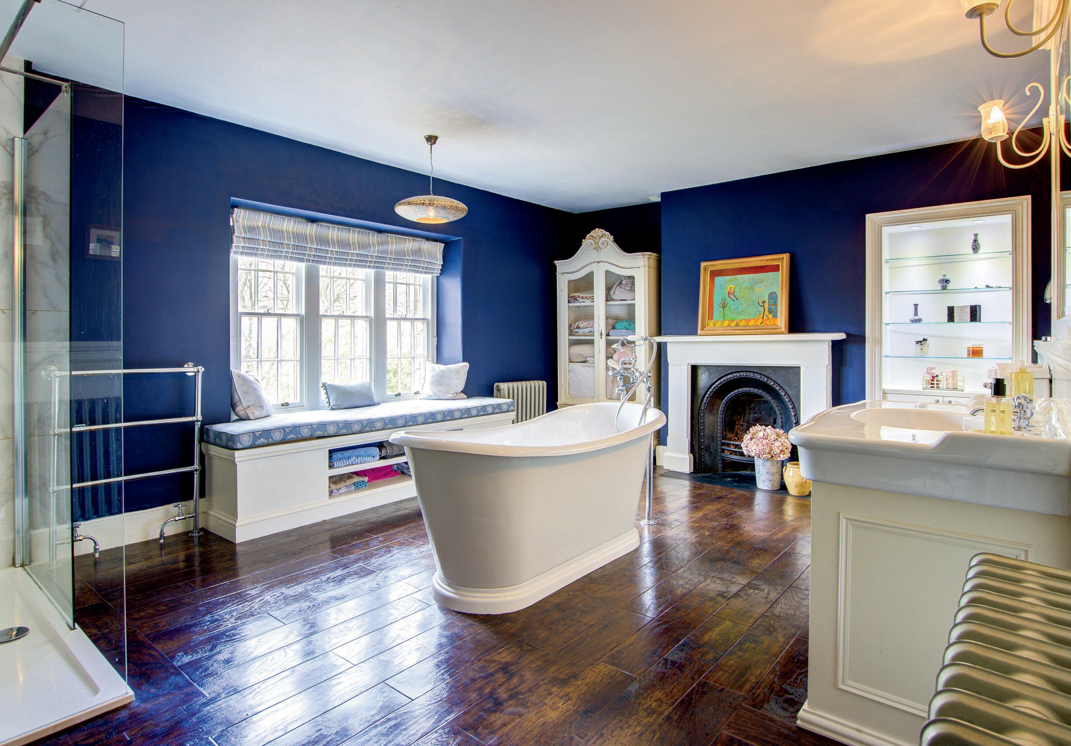 Ascend the magnificent staircase to the first floor, where a galleried landing bathed in natural light leads to four spacious double bedrooms. The principal suite boasts an elegant double bedroom with a period fireplace and serene garden views. The en-suite bathroom exudes luxury, featuring a freestanding bath, vanity basin, a corner walk-in shower, and a fitted window seat with breathtaking views over the gardens. This stunning Jack & Jill bathroom also serves an adjacent double bedroom. Two further bedrooms on this floor enjoy dual aspect windows with stunning views, served by a family