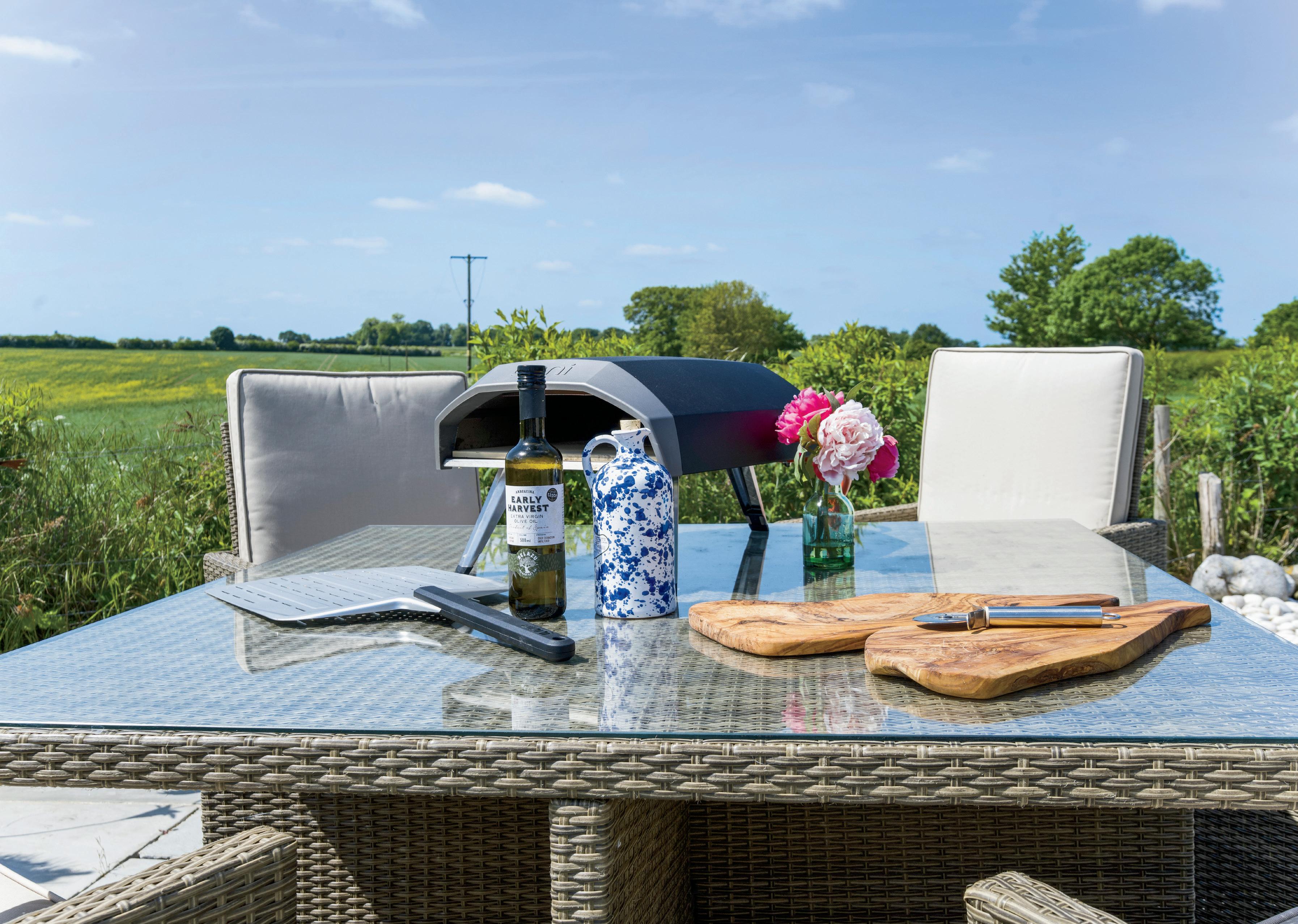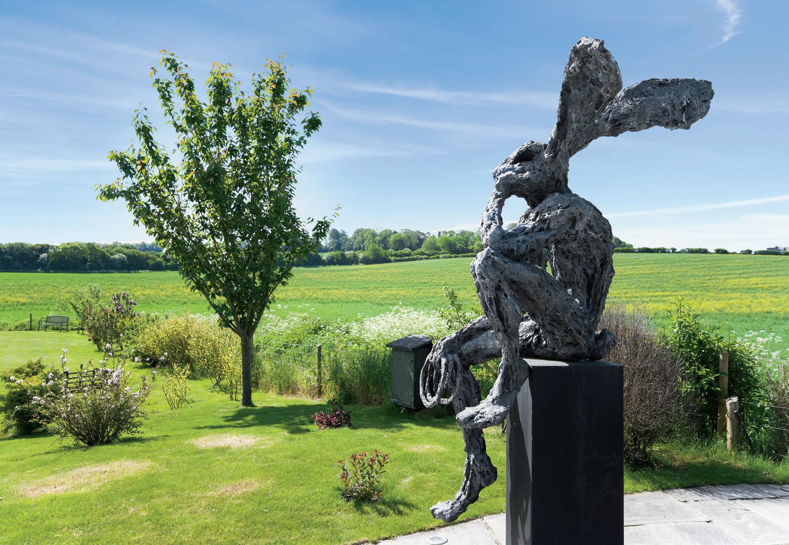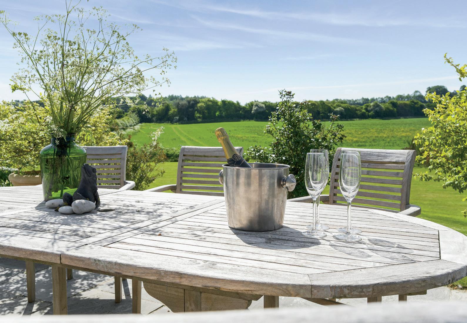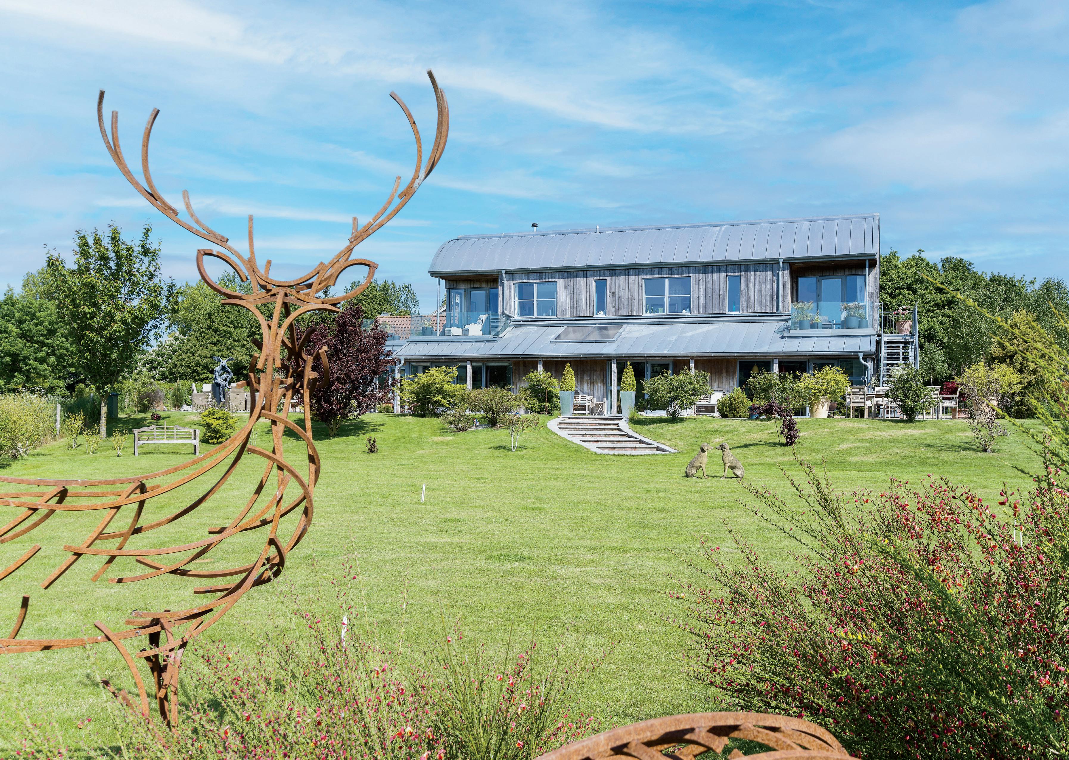 Outside, the gardens serve as an extension of the indoor living and entertaining space, the generous glass panes providing an invisible threshold between house and garden. “The garden slopes down from the terrace to a large lawn area,” the owners say. “We have planted shrubs, trees and hedging whilst maintaining open views over the fields. The garden is a real haven for wildlife, too, with everything from deer and hares to falcons, buzzards and kites regularly visiting us here.”